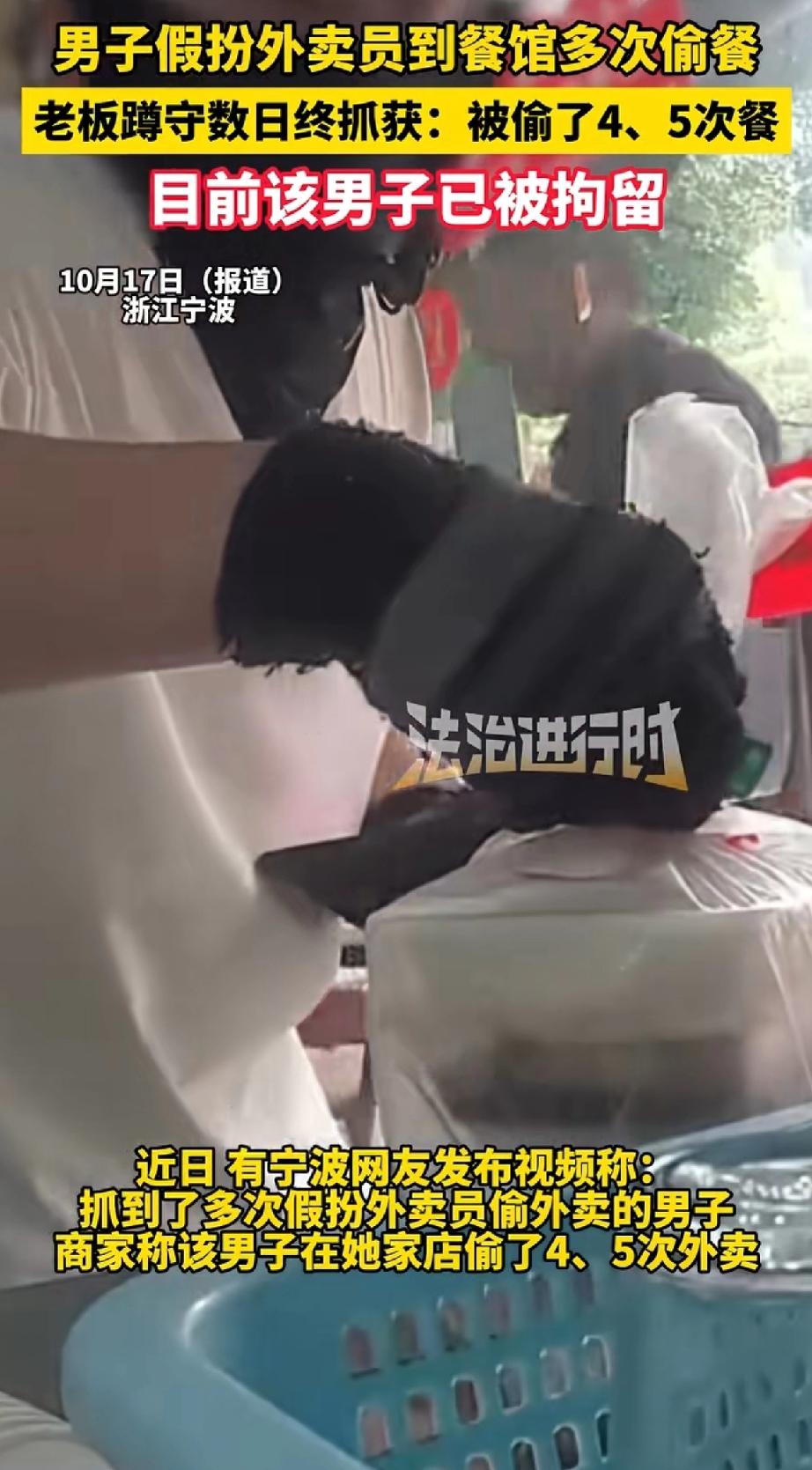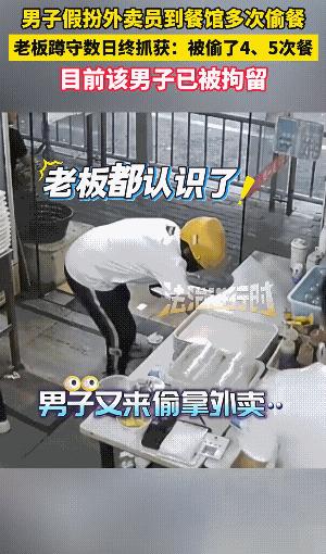 “胆子也太大了吧!”浙江宁波,一名男子假扮外卖员到餐馆多次偷餐。由于前几次都没有