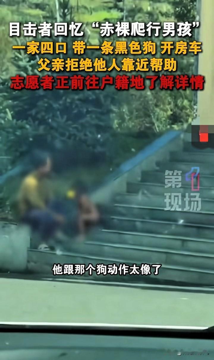 太炸裂,这样的奇葩父母全国罕见!一对疑似父母的男女,带着一个三岁左右的孩子和一个婴儿旅游。 三岁左右孩子竟然全身赤裸,四肢着地在地上爬行跳跃。 好心志愿者质疑孩子是否受到虐待,查明后的原因却让人瞠目结舌。 近日,在四川雅安石棉县高速附近的风景区,有好心人拍下一段视频引起了各种热议。 视频中,一家四口开着房车旅游,身边还带着一条黑狗。 可是四人当中,一个三岁左右孩子的状态,尤其让人感到非常地不可思议。 只见孩子上上下下不着一根丝线,全身赤裸,在景区凉亭、台阶上肆意跳跃爬行,动作非常熟练。 那孩子的行为举止,在外观习性上非常接近一条狗,尤其是孩子趴窝在地上的姿势与狗趴地像极了。 有路人看孩子可怜,拿出东西给他吃。这时孩子的父亲却站出来,气愤地阻止路人投食孩子。 而旁边站着的孩子母亲,在穿着上也有点异类。 她上身穿着长长的短袖,下身只穿一条类似内裤的短裤。 不过好在父亲手里抱着的婴儿,还是正常穿上了衣服。 对于这怪异的一家四口,志愿者们有很多疑惑:孩子真的是那对男女的亲生孩子吗? 孩子是否受到了虐待? 这对夫妻是否拿孩子当流量密码? 有志愿者们查出,他们的车子是从云南方向的高速开过来的。 按照此线索,志愿者迅速查到了那对夫妻的户籍所在地——云南。 志愿者们到了云南南涧县,一番调查,没想到,得到的答案却是与猜想大相径庭。 当地警方证实:那对夫妻是正常人,没有精神疾病,更没有做违法犯罪的事情。 他们不存在拐卖儿童,两个孩子都是他们亲生的。 至于他们对待孩子不同于常人的养育方式,当地民政局的工作人员告诉志愿者,那只不过是人家教育理念的不同而已。 那对夫妻都是大学生,他们崇尚回归自然、无拘无束的养育孩子的方式:不扎头发,不洗澡,不穿衣。 夫妻俩的家庭情况还不错,不存在博眼球搞流量带货的问题。 但民政局工作人员也透露了一个让网友们非常感兴趣的信息:那对男女是以夫妻的名义同居在一起,两个孩子到现在还没上户口。 要我说,这件事情是怎么想怎么觉得古怪。 真的搞不明白那对夫妻的脑回路,为什么他们会觉得“让孩子爬行,不让孩子穿衣服”,是一种回归自然的教育,而不是一种让文明退步的行为呢? 俗话说的好,孩子的教育,做父母的要以身作则。 那么,按照他们育人的理念,他们夫妻现在最应该做的难道不是,找一个洞穴,穿着树叶做的衣服,日出觅食,日落归巢。 渴了喝山涧水,饿了摘野果充饥。 这才是他们真正回归自然,所应该过的生活日常,而不是开着极好的房车,四处旅游才对。 如果他们自己本人都做不到这点,放不下滚滚红尘里的各种享受,那么我合理怀疑他们如此做的真正动机。 因此,也请他们放弃,打着“不同教育理念”的幌子,做着亵渎教育的事情。 所以,你们是怎么看待这对夫妻的行为?他们这样做真的合适吗? 素材来源:第一现场,侵删 人生百态