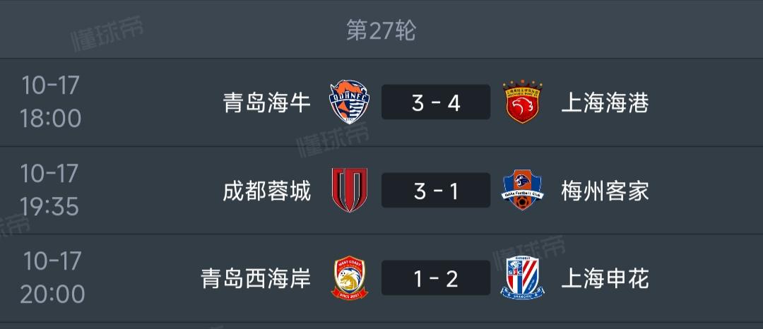 中超最后三轮争冠“三人组”赛程难易程度如下海港——“地狱难度”蓉城——“困