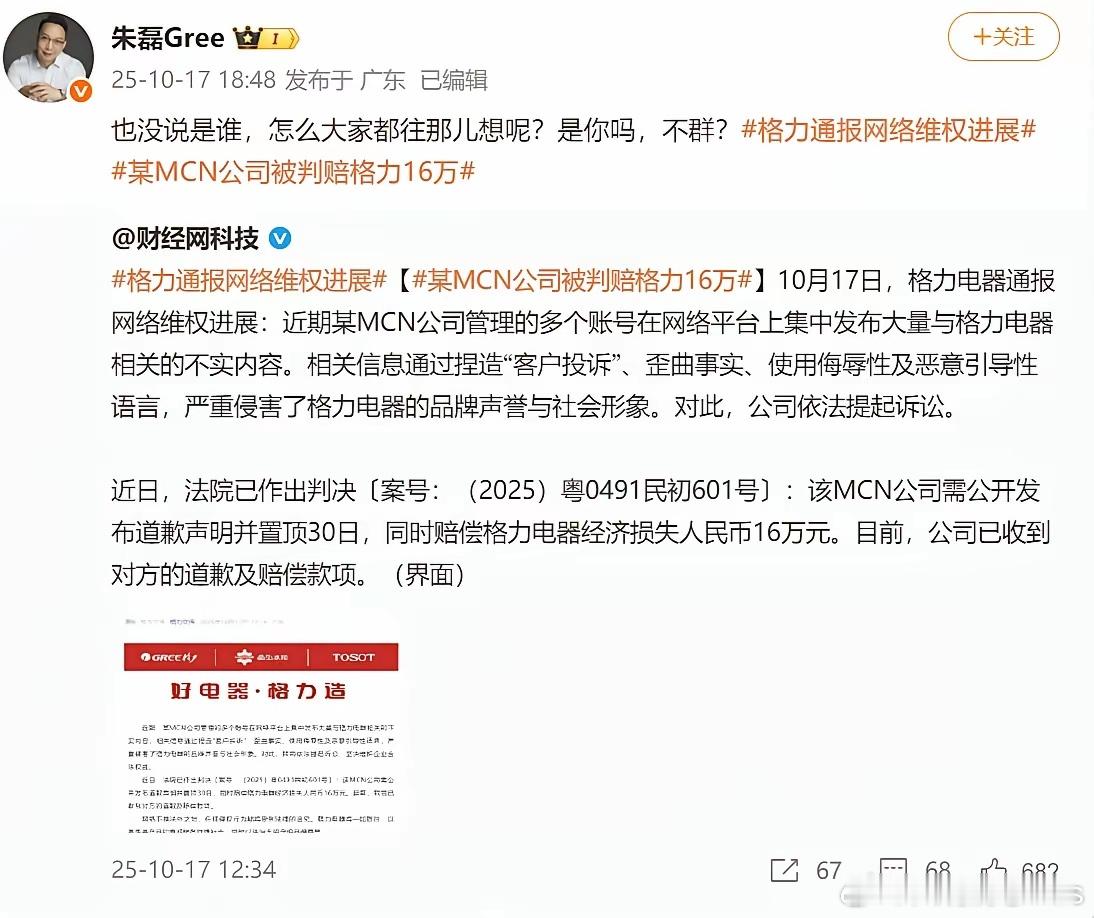 格力通报网络维权进展,格力高管口中的“不群”说的是谁啊?