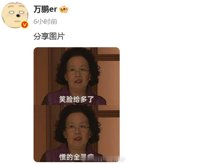 万鹏笑脸给多了惯的全是病万鹏转发公司声明万鹏发表情包&转发公司声明回应热议。