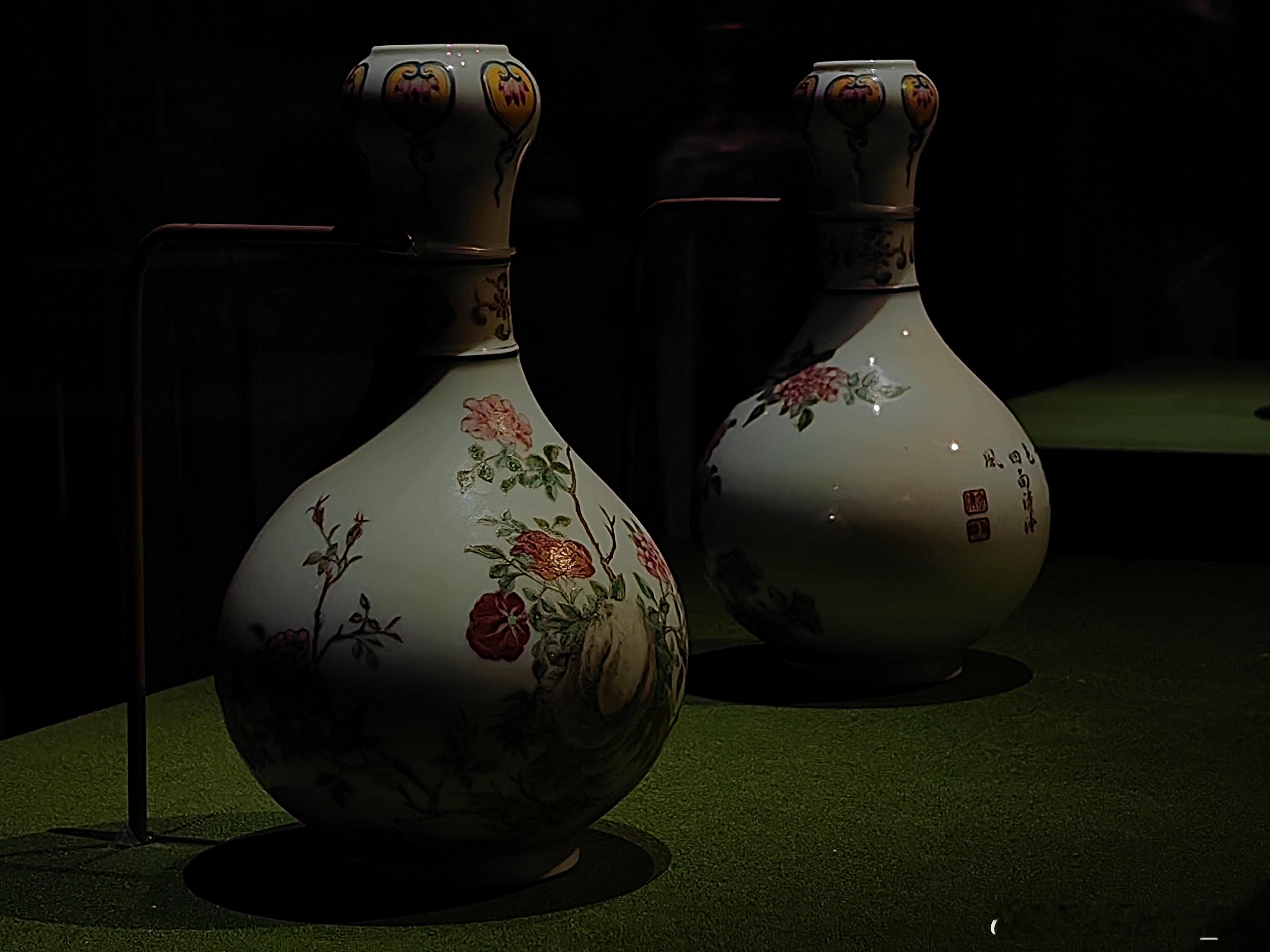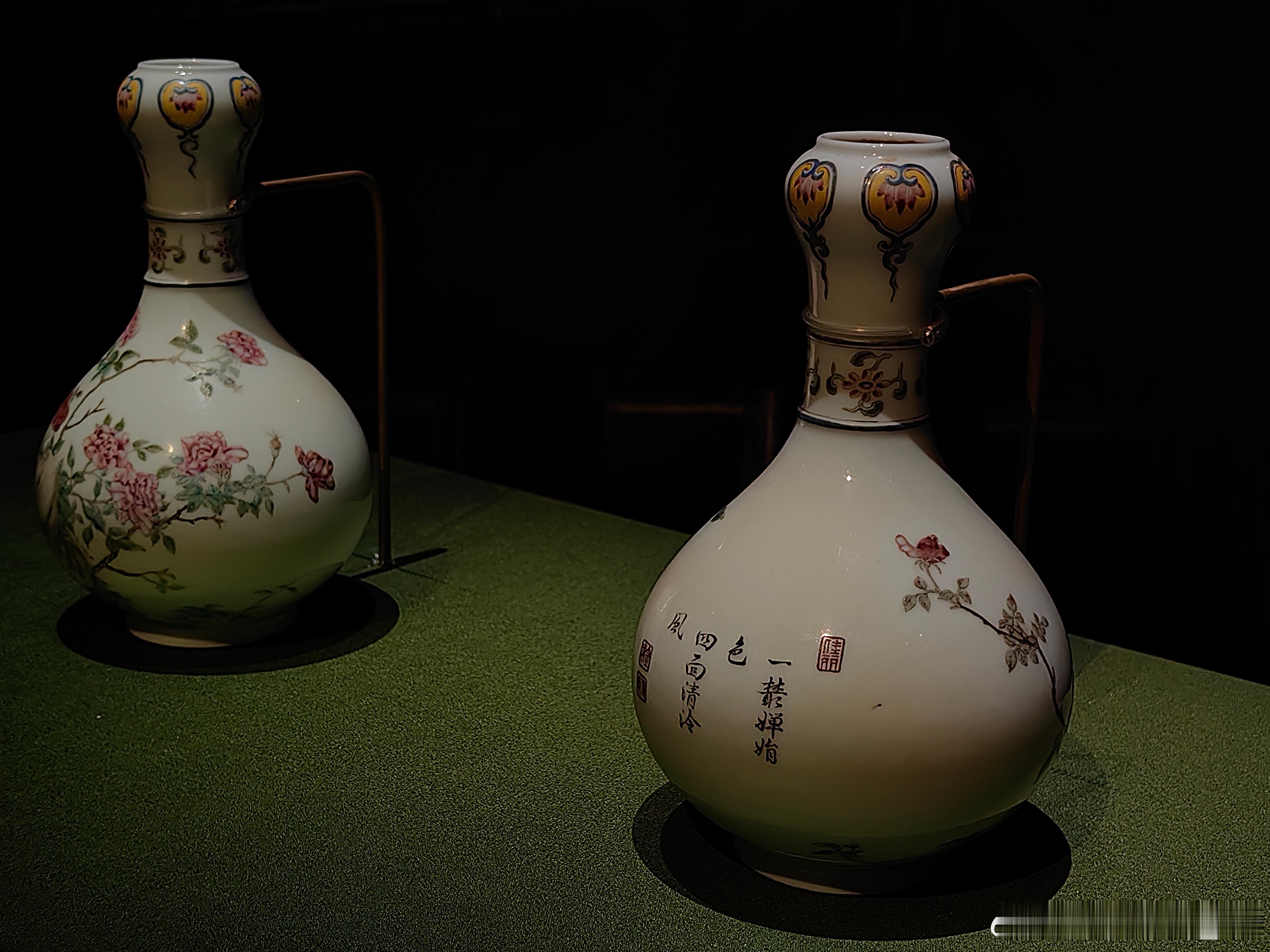 珐琅彩瓷是清代皇室自用瓷器中最具特色的品种,在工艺与艺术表现上达到了较高水准。乾隆更是注重珐琅彩瓷的文化内涵与艺术融合,往往在瓶身配有题诗等文字装饰,诗、书、画结合使得珐琅彩瓷不仅是实用的器皿,更是兼具艺术价值与历史价值的珍贵文物,反映了清代宫廷瓷器制作的高超技艺和审美追求。