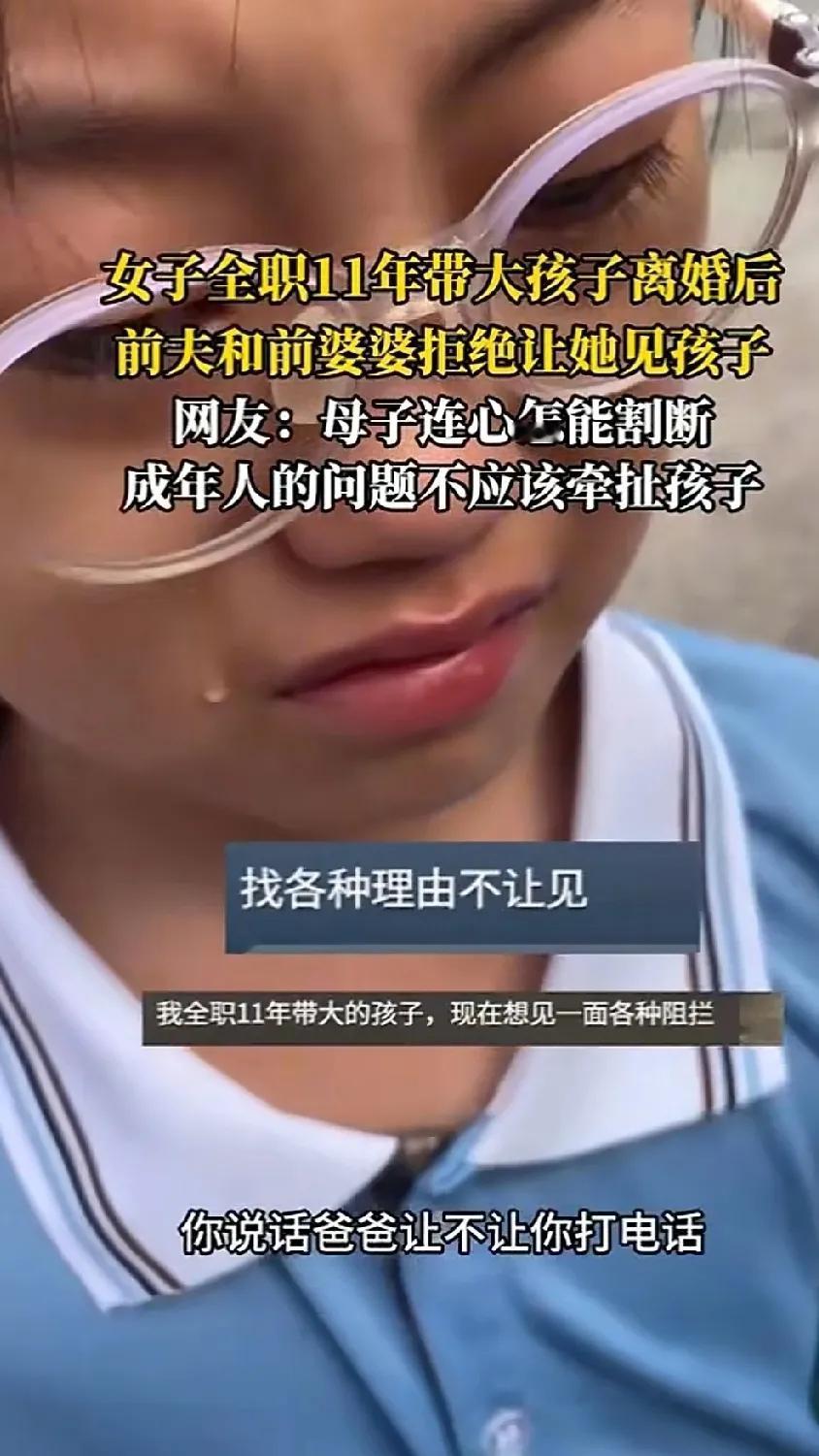 11年全职妈妈离婚难见娃,女儿一句话让全网心疼 离婚后见不着孩子,成了那位妈妈心里的疙瘩,解不开也散不去。她当全职妈妈的11年,没为自己活过一天——早上跟着孩子的哭声起床,夜里等孩子睡熟了才敢歇,孩子学走路时扶着的是她的手,学说话时先喊的是她,就连第一次闹脾气躲起来,也是她蹲在衣柜旁轻声哄出来的。可就因为一张离婚证,曾经天天抱在怀里的孩子,如今想听听声音都要“看脸色”。 前婆婆和前夫把孩子看得紧,电话要么不接,要么接了没说两句就挂,视频更是想都别想。有回她趁前夫不在家,总算打通了家里电话,刚听见女儿喊“妈妈”,声音就忍不住发颤,憋了半天问:“是不是爸爸不让你给妈妈打电话呀?”电话那头没声音,只有细细的抽泣声,过了好一会儿,女儿才带着哭腔说:“爸爸不让我打……”就这一句话,她拿着手机蹲在地上哭,心里像被针扎似的疼——那是她养了11年的小宝贝啊,连想妈妈都要藏着掖着,哪有这样的道理? 孩子懂什么呀?他们只知道家里少了妈妈的味道,睡前没人给盖被角,吃零食没人说“少吃点”,受了委屈只能自己躲在房间里哭。好好的家散了,孩子已经够可怜了,怎么还能拿孩子撒气?老话说“打断骨头连着筋”,十月怀胎的情分,11年朝夕相处的依赖,哪能说断就断?大人之间有矛盾,就该大人自己解决,把孩子当“挡箭牌”,不让孩子见妈妈,这不是欺负孩子吗?孩子心里得多难受,会不会觉得是妈妈不要自己了? 其实养孩子哪是“争输赢”?孩子要的从不是完整的房子,而是完整的爱。别让大人的恩怨,毁了孩子对妈妈的念想,给孩子见妈妈的机会,才是真的为孩子好。毕竟孩子的成长只有一次,错过了就再也补不回来了,要是等孩子长大了问“小时候为什么不让我见妈妈”,到时候再后悔,可就晚了。离婚女性心理 离婚女性现状 单亲妈妈困局