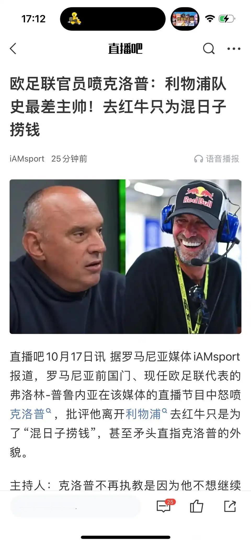 欧足联官员喷克洛普,利物浦对史最差主教练?? 可能他不跟我们在一个时空,那个世界里克洛普带领利物浦降级了,骗了利物浦几个亿捐款跑路。 他到底有没有看过当代足球,看英超?? 克洛普都是利物浦队史最差,那也应该是美茵茨和多特蒙德队史最差!![笑哭]