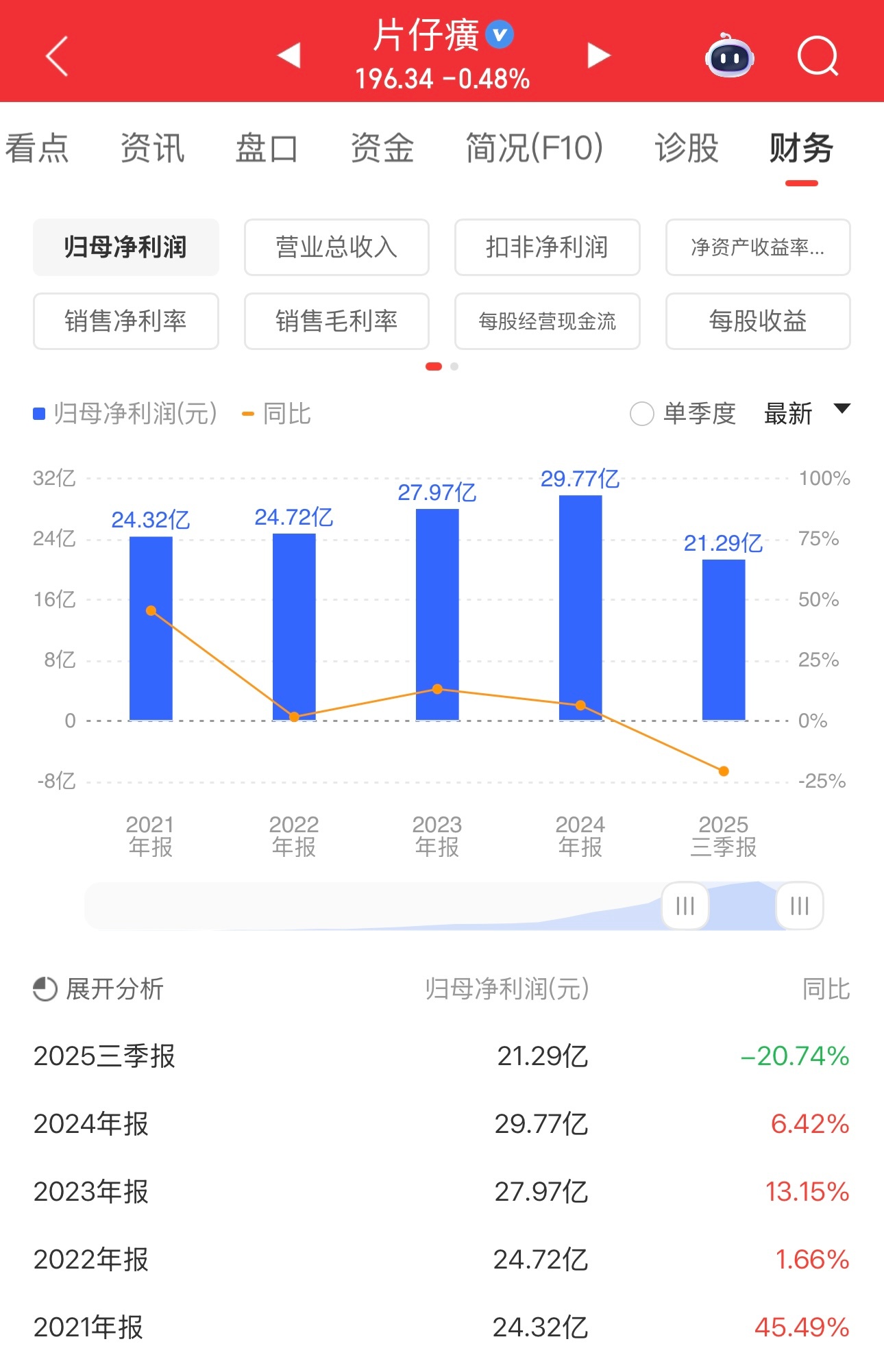 片仔癀业绩出来了,雪上加霜,三季度业绩同比大幅度减少。