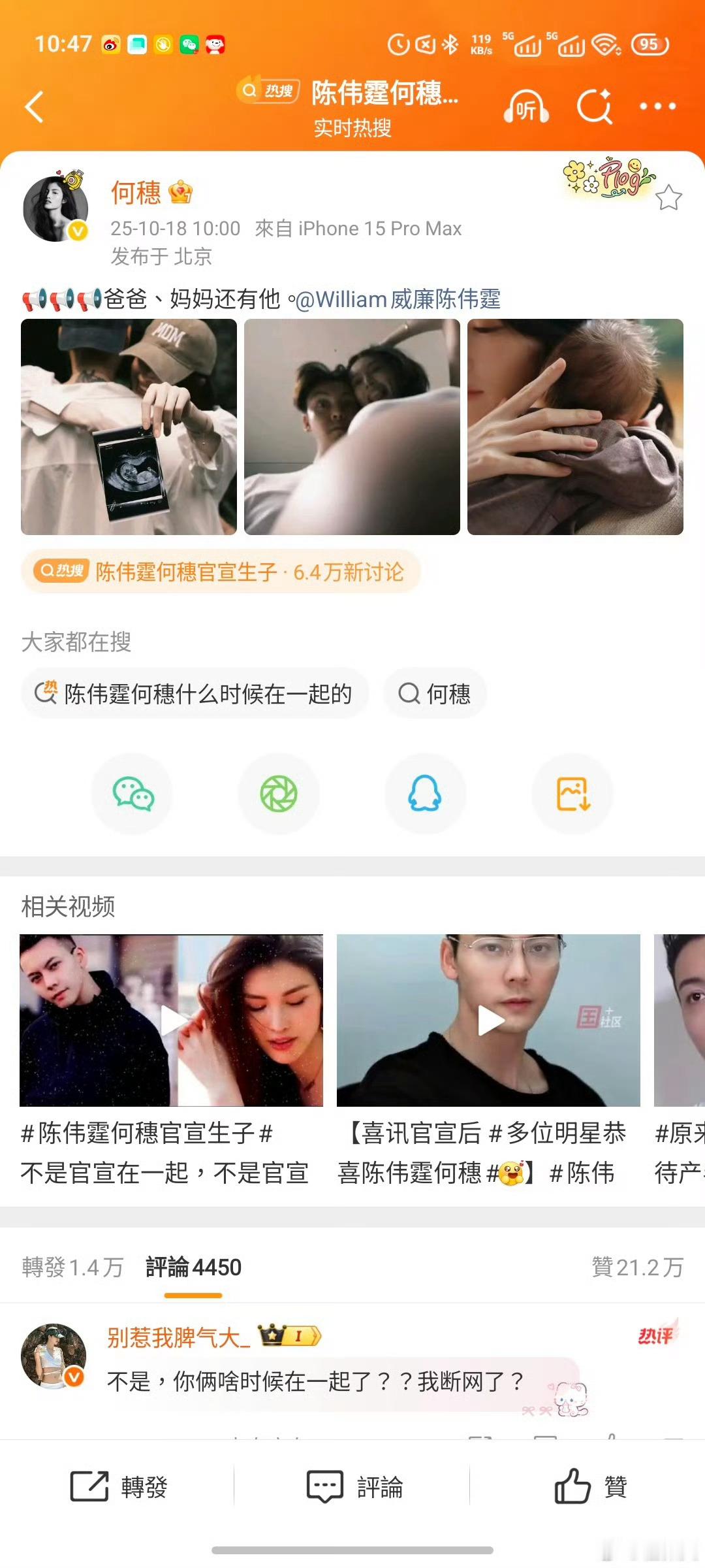 陈伟霆何穗官宣生子恭喜!!!!ヽ(。ゝω・)ノ゚*:・゚