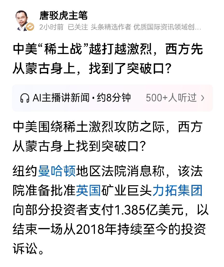 现在非常担心,如果蒙古国的稀土资源,大量进入国际市场,会不会影响中国在国际上对稀土的控制权呢? 说白了,就算把蒙古国全部的稀土资源都进入国际市场,也不会对中国有影响的。因为稀土本来就不缺,谁家都有矿,这没有什么稀奇的,最缺的是顶级的对于稀土的萃取提纯技术。毕竟,普通的提纯技术他们都也有,但是没有什么用! 而且,这些美西方国家没有稀土产业链,就算拿到了大量的稀土原料,也只是白费力气罢了!不管怎么说,对于稀土这一方面而言,最重要的就是技术。只说矿资源的话,在美国的阵营里面,澳大利亚更多。美国就根本不会考虑夹在中俄中间的蒙古。所以,矿不是问题,技术才是! 说到底,稀土资源美国自己也有,根本犯不着到蒙古去挖。美国缺少的就是上面提到的顶级萃取提纯技术与稀土提炼的整套生产链。最重要的是,这个生产链绝对不会是美国在十来年的时间内,可以积蓄起来并建成的!