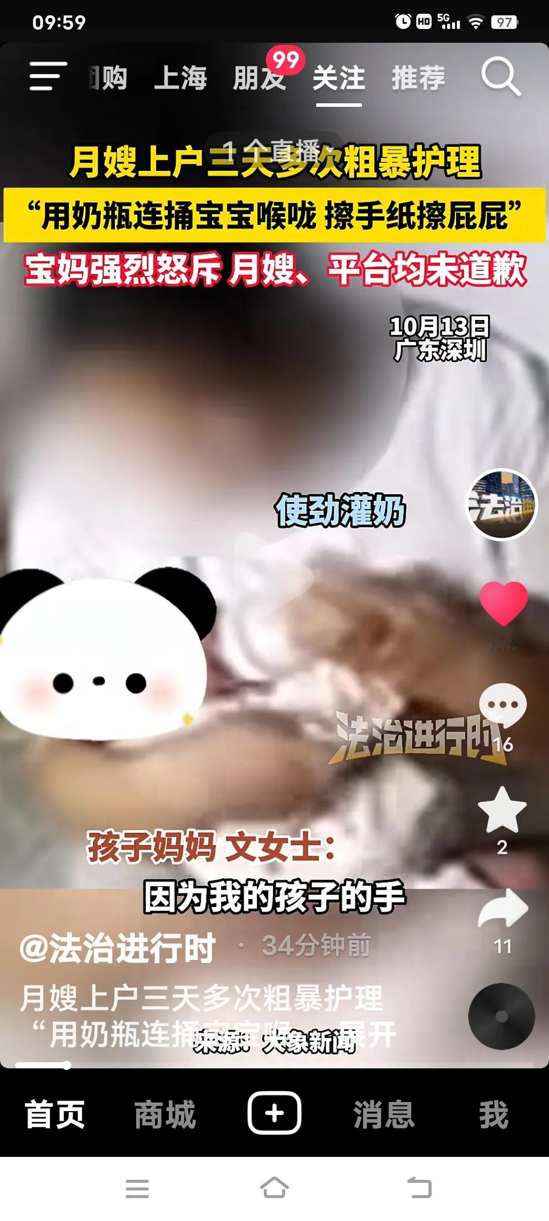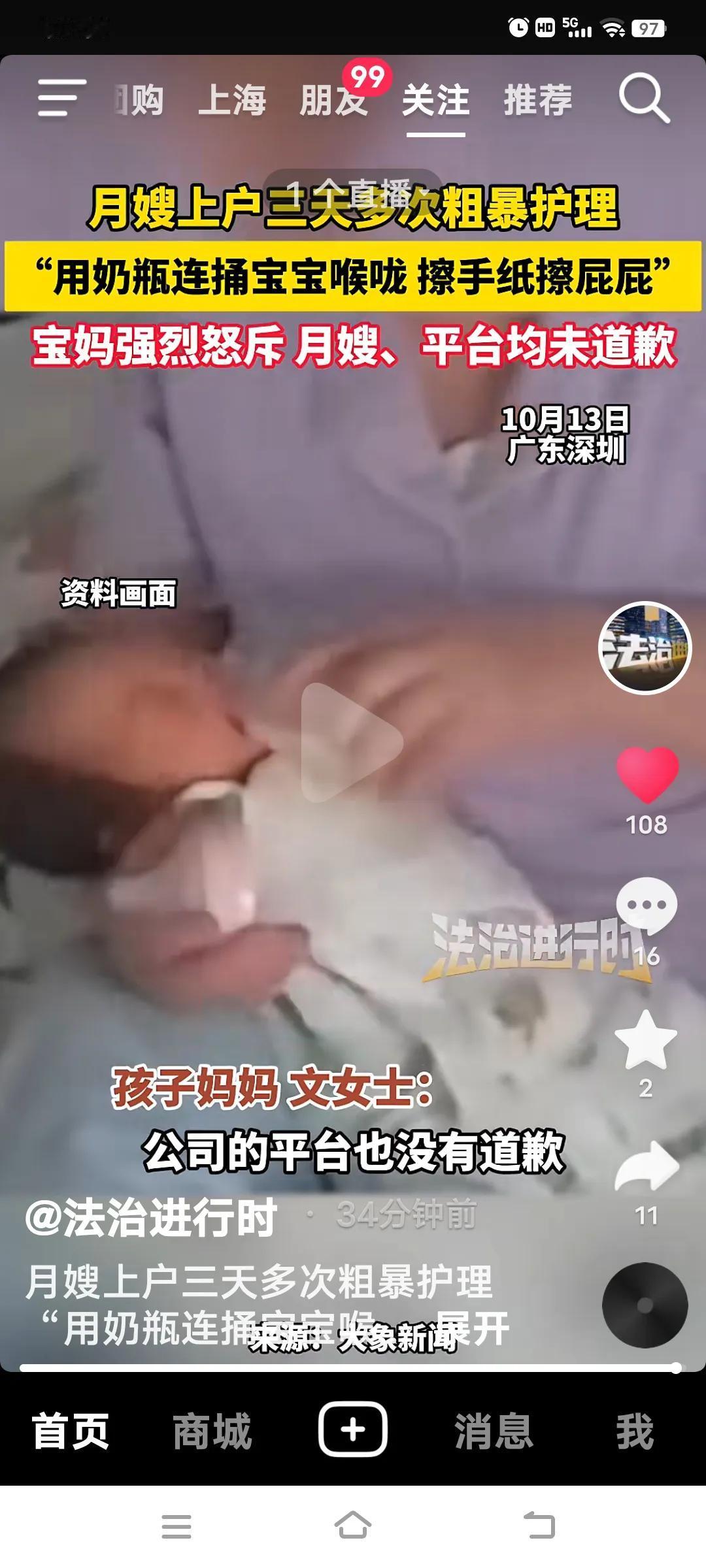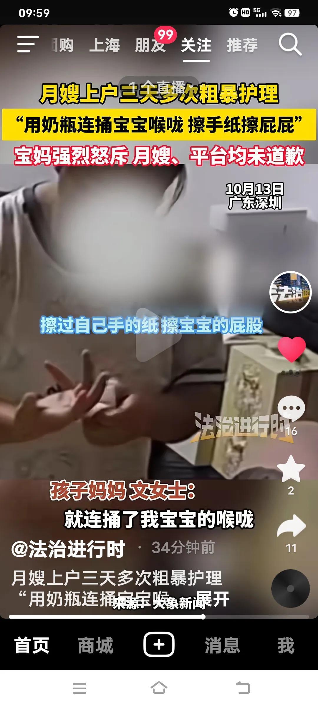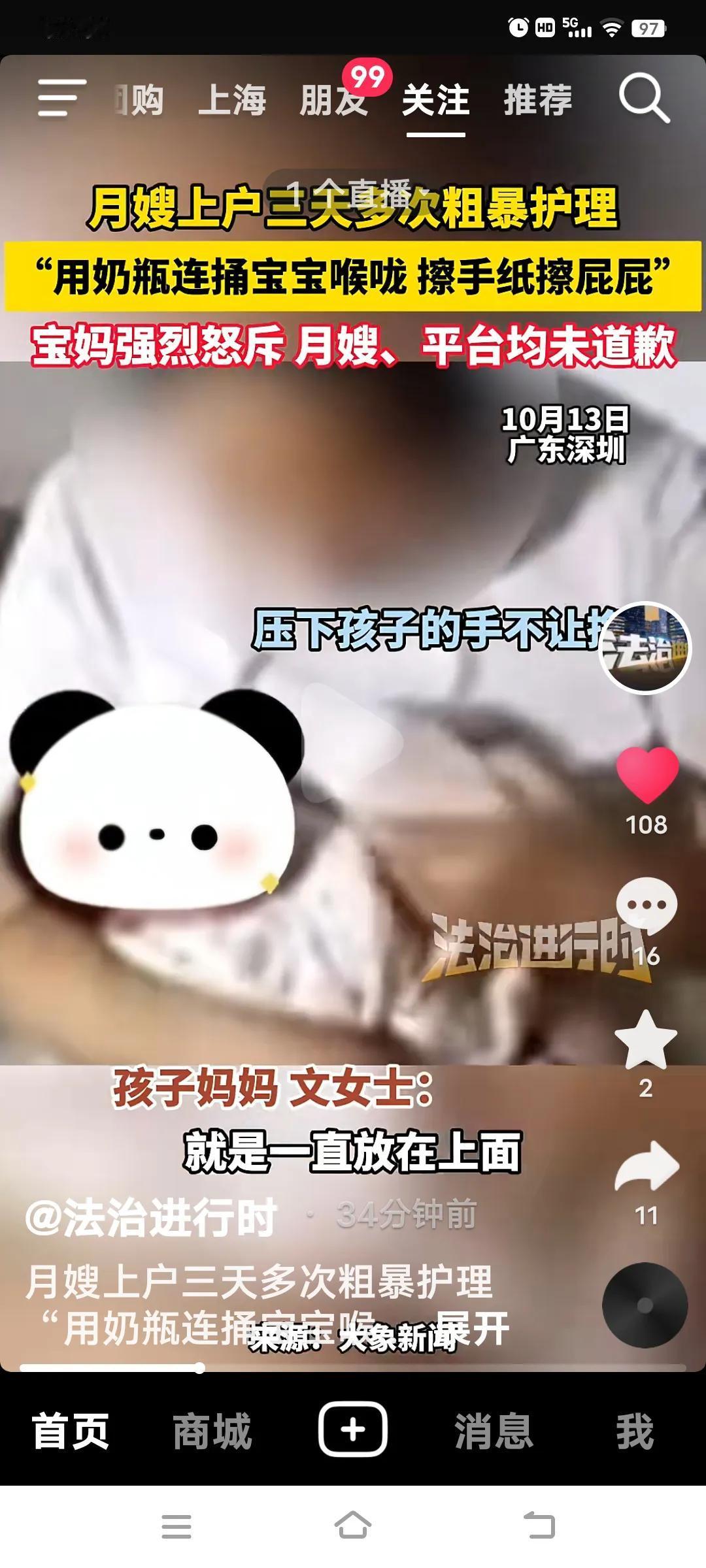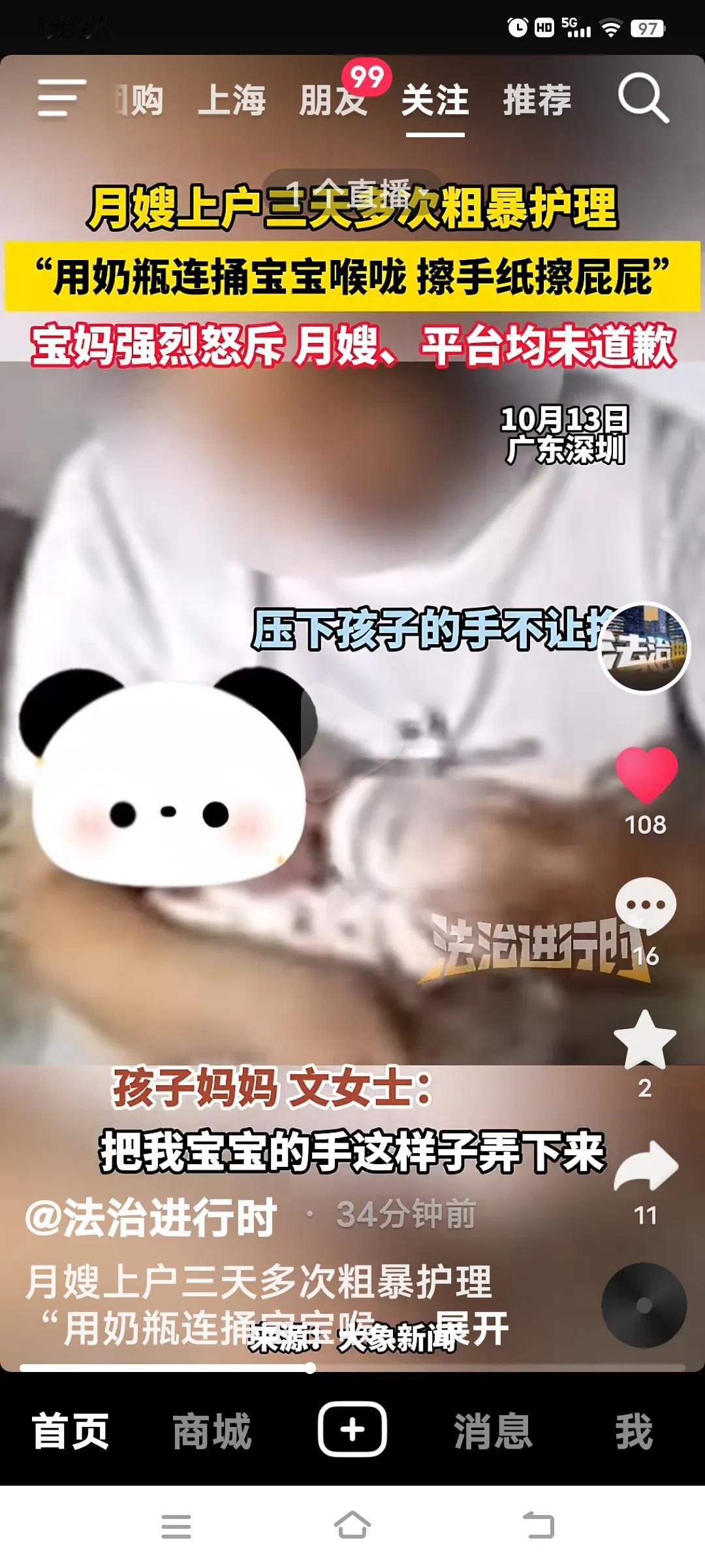 当今社会,月嫂的薪资水平可谓名列前茅,而且月嫂行业也即将迎来上市的发展阶段。然而,即便腰缠万贯,也未必能觅得一位优秀的月嫂,且看下面这个事例,你定会心服口服! 广东深圳的文女士聘请的月嫂,在上户仅三天的时间里,便多次对孩子粗暴相待。她竟“用奶瓶连通宝宝的喉咙”,用自己擦手的纸给宝宝擦屁股,还强行压住宝宝的手。如此行径,这样的月嫂,你敢用吗? 文女士愤怒地斥责了该月嫂,可平台却连一句道歉都没有。评论区有人指出,文女士并未透露是哪个平台。像这样的月嫂,辞退时竟还要罚款,更别提支付工资了。宝宝如此稚嫩,若护理不当,真可能导致身体变形,甚至引发严重后果! 说实话,这反映出的是个人本性问题。说到底,平台承担相应责任也是合情合理的。但话又说回来,平台也无法洞察每个人的内心,又怎会知晓其涵养和素质究竟如何呢?月嫂 月嫂收费 月嫂乱象 月嫂带小孩 月嫂怒扇婴儿 月嫂上户感想 月嫂纠纷