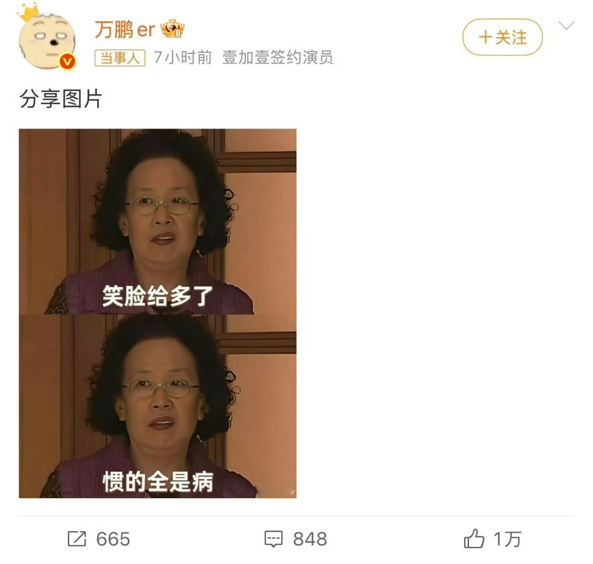 万鹏 笑脸给多了惯的都是病两个没有听过的人,在这里疯狂炒作,咱也不知道是为啥,这是要有新作品上来了吗?