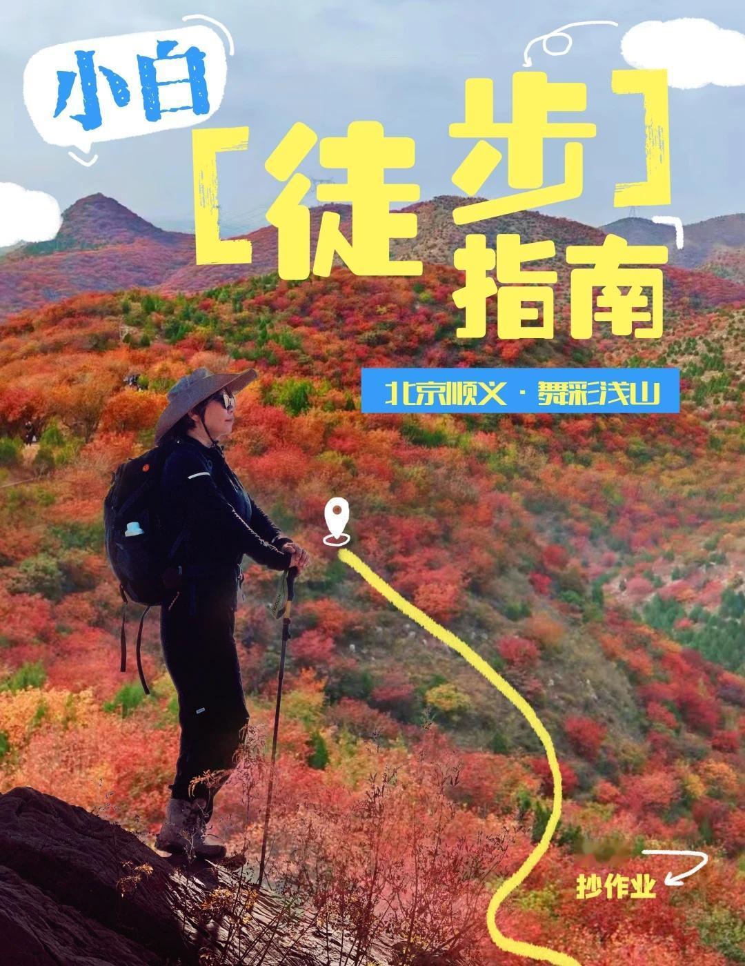 🌄 徒步小白初体验|征服舞彩浅山全记录 本人徒步小白,第一次尝试 💥 真实感受: 刚开始只顾着疯狂拍照📸,后来才发现徒步的快乐是—— 用脚步丈量山野,用汗水兑换风景! 虽然爬到最后腿抖得像筛糠,但看到漫山红叶的那一刻,真的值了!🍁 深浅不一的红色层层叠叠,像打翻的调色盘,美到窒息! 没有体验过的小伙伴可以当成徒步起蒙篇!不用想啦,约上三五好友,赶紧冲吧! 📍 地址:北京顺义·舞彩浅山国家登山步道(白毛峪停车场) 🚗 交通:天津出发约170公里/2.5h,导航至白毛峪停车场(免费停车) 🎫 门票:免费!免费!免费! ✨ 为什么推荐你来? 1️⃣ 新手友好型路线:7公里环形步道+300m爬升,4小时轻松完成,部分栈道+野趣山路混合,安全不枯燥! 2️⃣ 视觉暴击级红叶:10月下旬漫山红遍,深红、橙红、金红层层叠叠,像打翻的调色盘🎨 3️⃣ 零成本快乐:免门票+免费停车+无商业干扰,纯享自然野趣 📸 出片指南 ✔️ 红叶隧道:栈道两侧红叶垂落,低角度仰拍秒获电影感 ✔️ 山顶俯瞰:登顶后拍摄红叶山谷全景,建议用手机广角 ✔️ 穿搭建议:穿亮色冲锋衣,在红叶林里超显眼! ✔️ 黄金时段:下午光线柔和,树叶透光绝美 ⚠️ 血泪总结的Tips 1️⃣ 时间卡点:10月下旬-11月上旬是红叶巅峰期,务必选晴天去!阴天颜色会发暗 2️⃣ 生存装备: * 带足水+能量棒(山上无补给) * 登山杖必备!最后2公里碎石路超滑 3️⃣ 如厕预警:停车场是最后一个厕所,上山前解决好 又是一年红叶季 又到登山赏红叶的好时节 秋季去爬山 舞彩浅山 北京周边赏秋好去处 徒步踏秋去 秋天就要去跑山 徒步丈量世界 可以发文件了