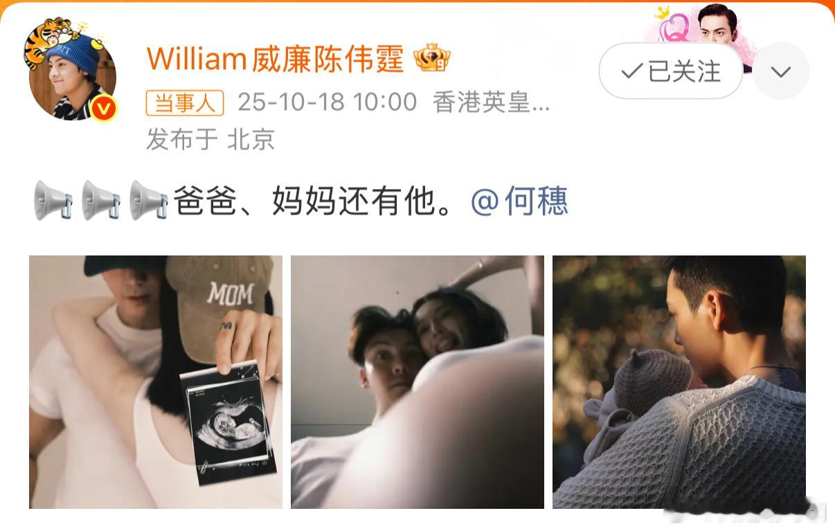 陈伟霆何穗官宣生子好命哥你也太好命了吧娶到了何穗!!!!!男帅女靓孩子得有多好看!!祝福!