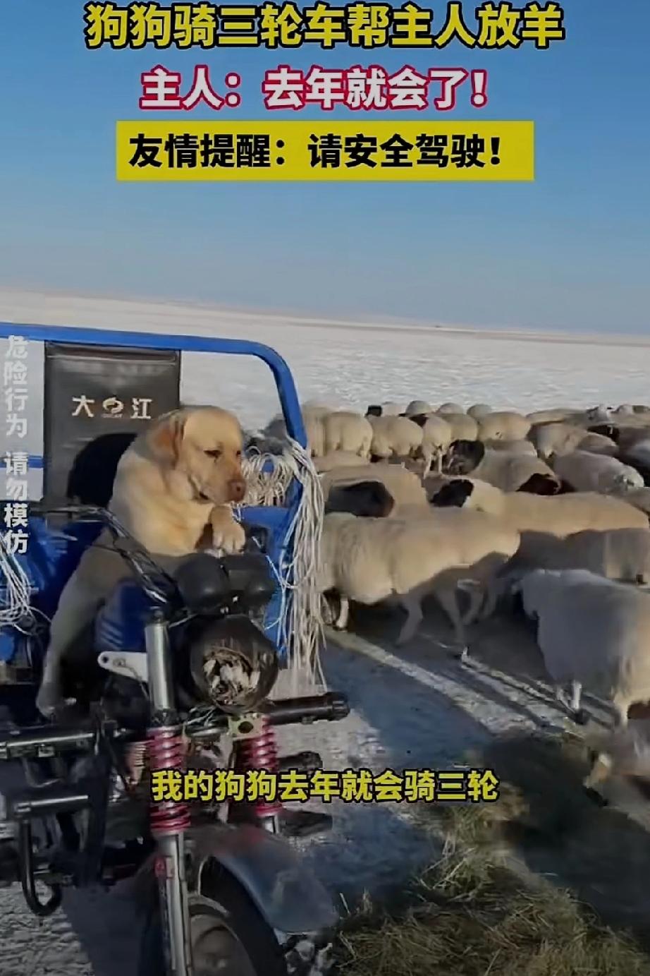 狗子骑三轮车帮主人放羊,去年就会了,主人养的这只狗子是真聪明,不但看家护院主人还教会了狗子骑三轮开铲车,成了主人的真正好帮手,主人走到哪它就跟到哪一直陪伴在主人身边,它开三轮车的样子看笑了无数网友!狗子的忠实聪明是其他动物比不上的,这也是许多人爱养狗子的原因吧!