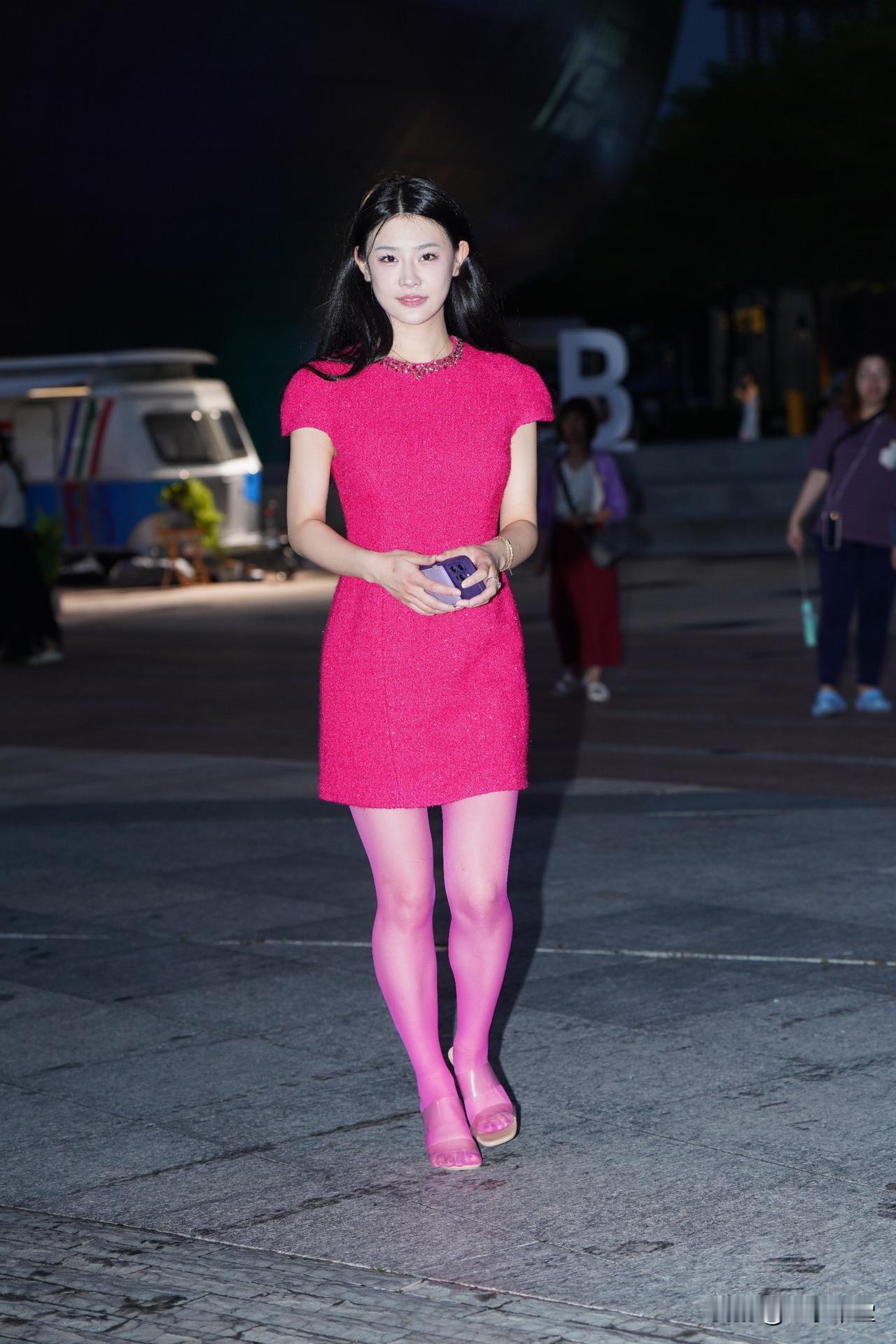时装周上的玫红色紧身裙丝袜美腿小姐姐 ​​​!!!分享街拍小姐姐