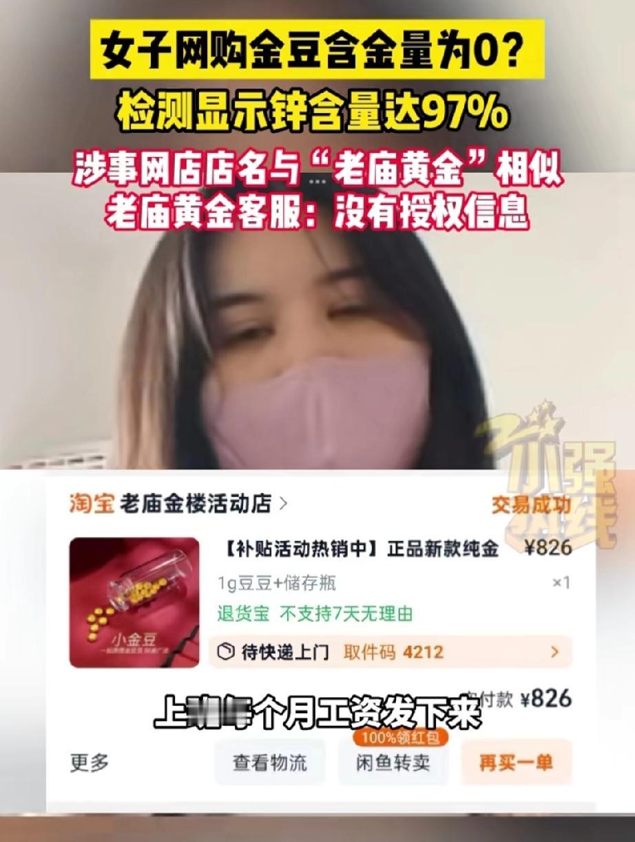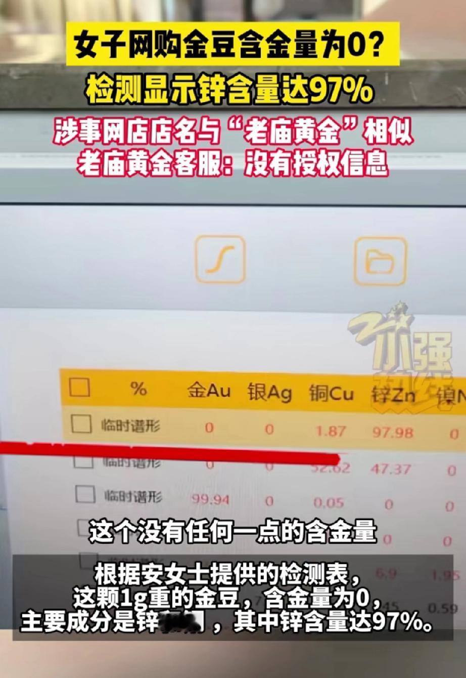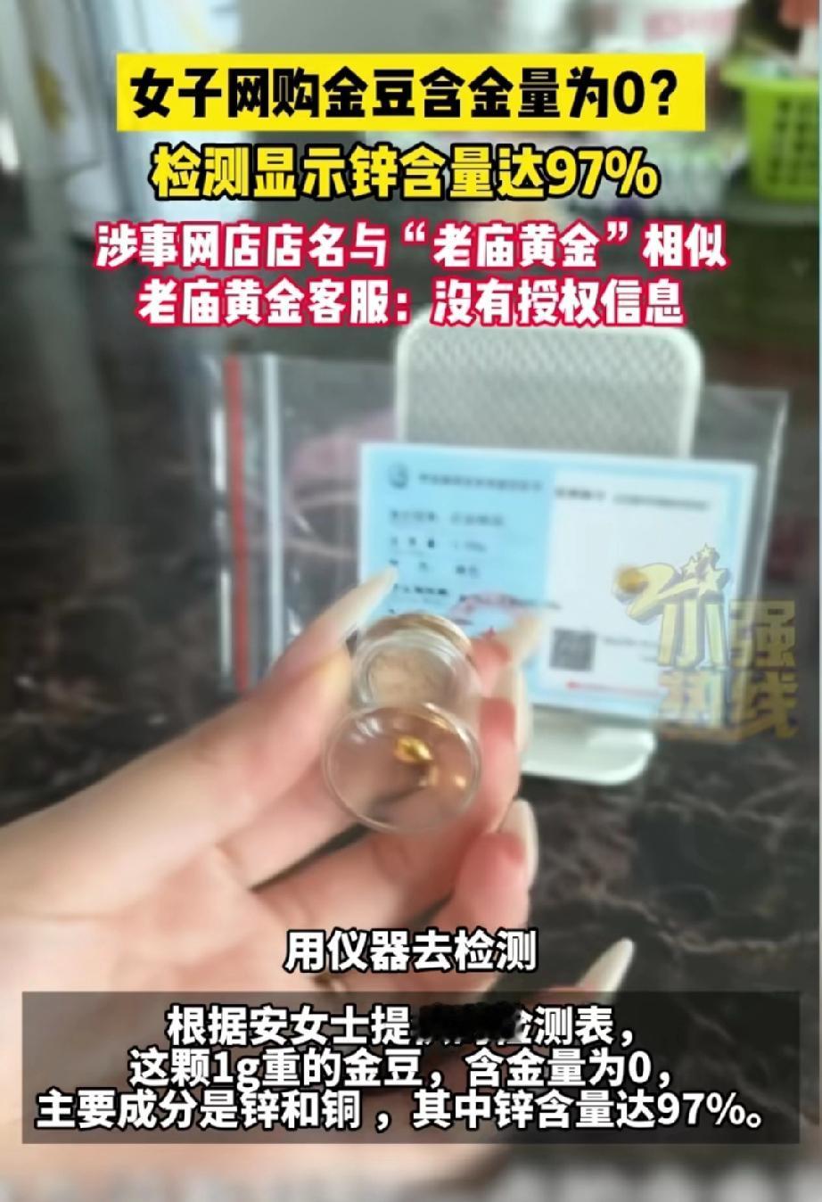 金价持续攀升,温州一位女子计划每月从工资中拿出一部分钱,购买一粒金豆用于投资。 她秉持着积少成多的理念,在淘宝花费826元购入了一粒一克重的金豆。然而,她担心金豆是假的,便前往金店进行验证。 金店告知女子:“你这金豆似乎存在问题,将黄金熔掉才能辨别其纯度。” 女子表示:“那就熔了吧。”但金店却不愿意这么做。 于是,女子转而寻求检测机构的帮助。检测结果显示,这粒金豆并非黄金,仅含有铜和锌,其中锌的含量高达97%。 女子当时选择的是一家名为“老庙金楼活动店”的店铺,她误以为这就是“老庙黄金”,觉得肯定有保障。 但当她联系“老庙金楼”客服时,客服根本不予理会。 女子又联系了“老庙黄金”,客服告知她:“你购买金豆的这家店,并未获得我们的授权。” 没过几天,“老庙金楼”的店铺便已关闭。 此时,女子才惊觉自己上当受骗了。 淘宝客服回应称,已发现该店铺经营存在问题,正在进行核实处理。 当年轻一代将目光投向黄金储藏,这早已超越单纯的资产配置,是理性投资观与民族文化基因的温柔共振。 但是我认为,购买黄金、翡翠等贵重物品时,最好选择有品牌保障的实体店,或是网上官方认证的店铺,这样即便出现问题,也能及时维权。 来源:小强热线浙江教科