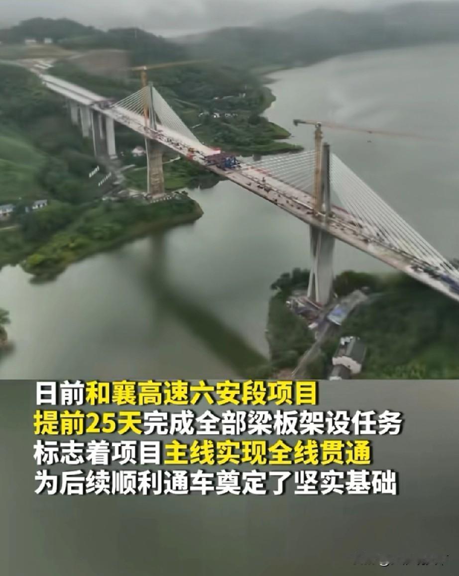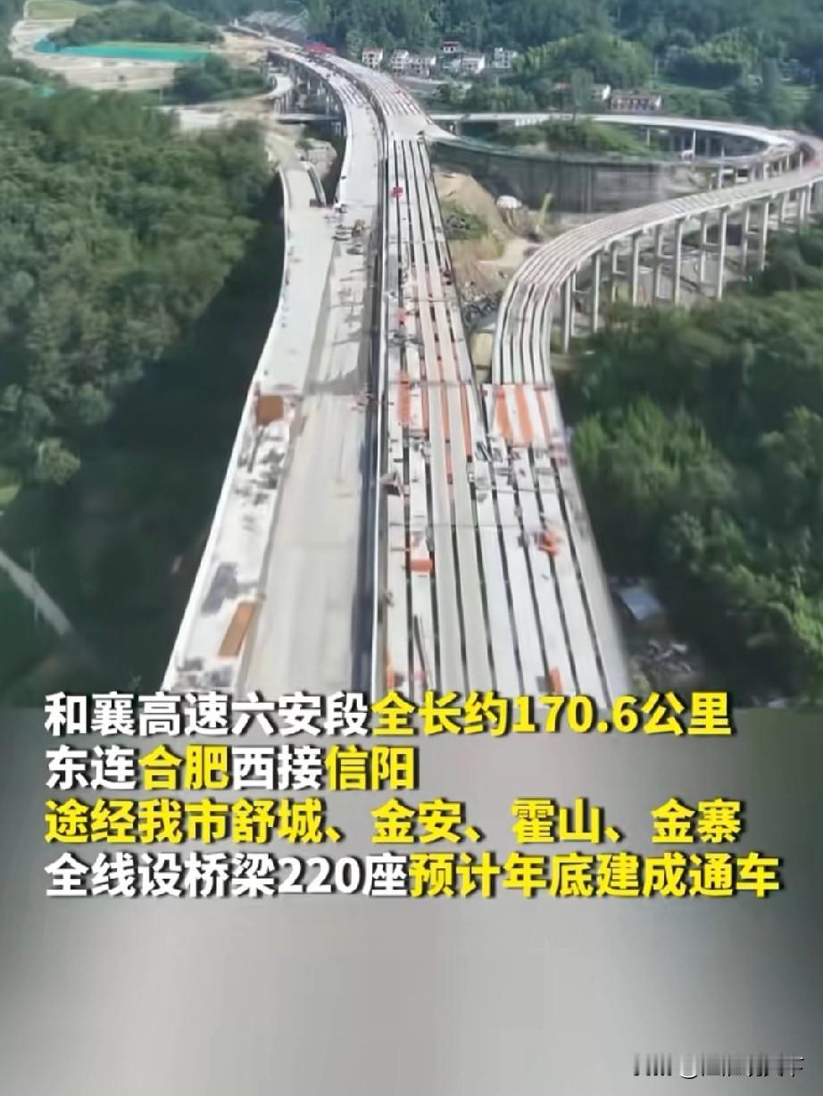 六安跟着合肥真沾光了,和襄高速六安段年底通车 G4222高速,也就是和襄高速,起自于安徽省马鞍山市和县,经过安徽省的含山县、巢湖市、舒城县、霍山县、金寨县, 河南省的商城县、新县、信阳市, 湖北省的随州市随县、枣阳市、襄阳市,是横跨安徽,河南,湖北三省的交通大动脉。 六安广播电视台报道,和襄高速六安段,提前25天完成全部梁板架设任务,标志着项目主线实现全线贯通,为后续顺利通车奠定了坚实基础,预计2025年底通车。 这些年,六安坚定的跟着合肥走,各项交通设施建设的非常快速,完善,其中六安境内涉及到的高铁,高速项目都获得了批复和开工。 六安坚定的跟着合肥走,没有三心二意,没有左右逢源,合肥对于六安的关照,大家都是可以看到的。六安高速 合周高速 六安高速互通 和襄高速公路 和襄高速