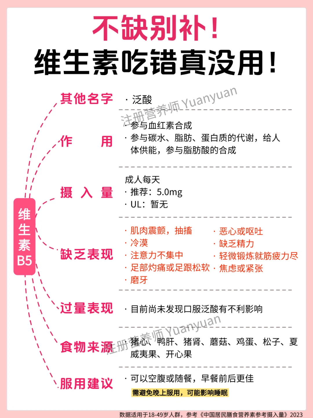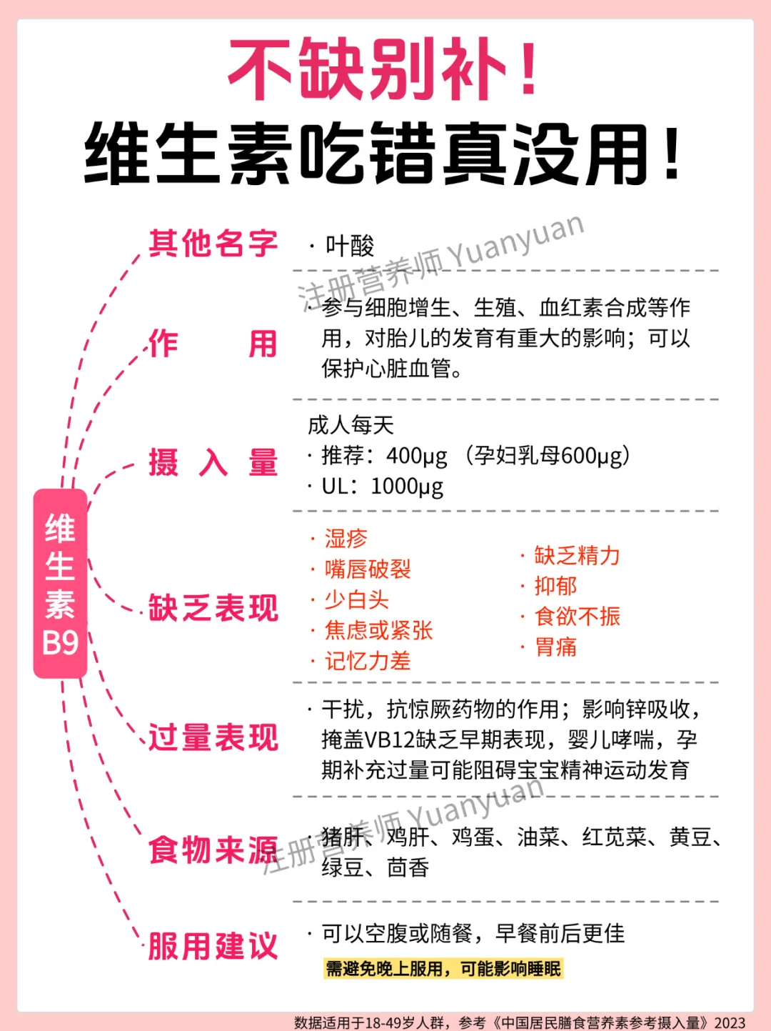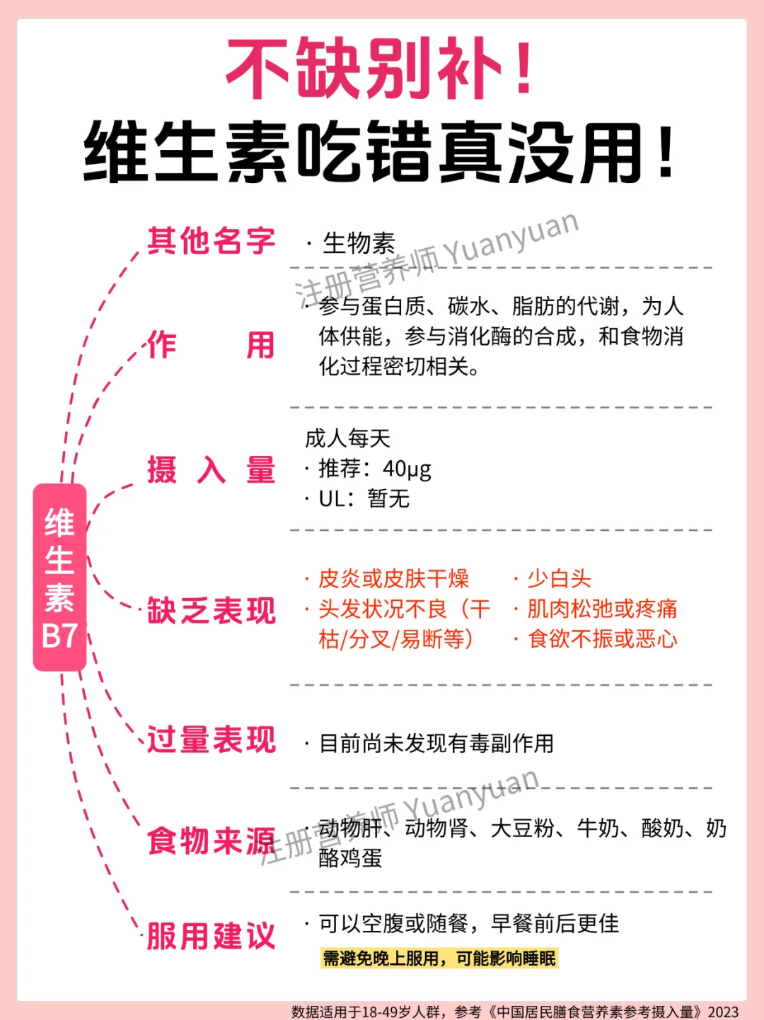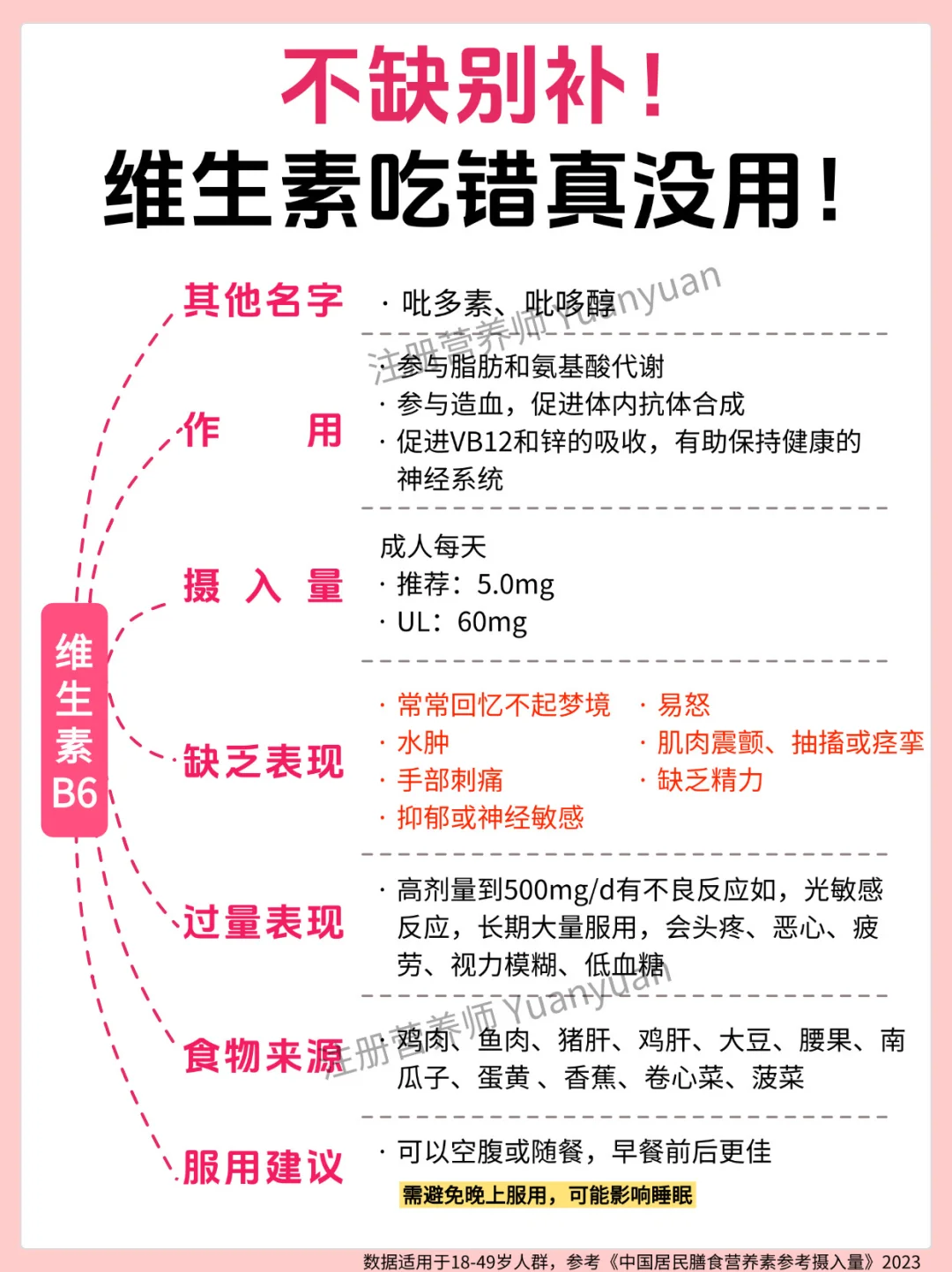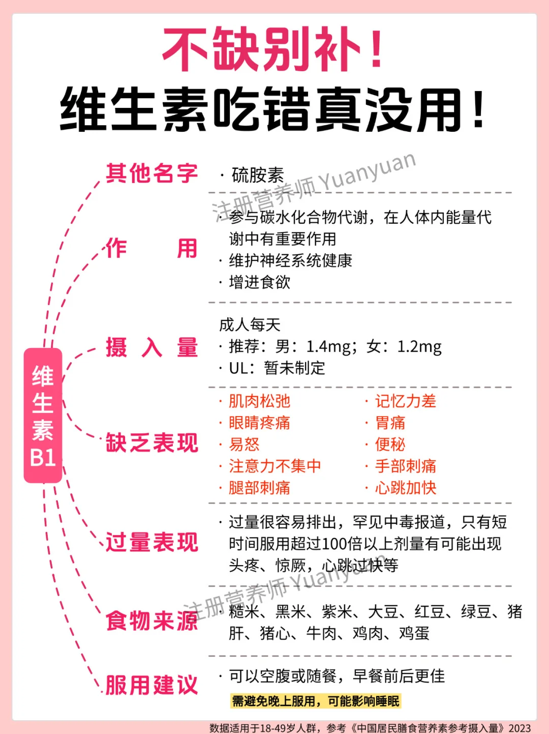 ✅别贪 “多”:过量补充会给身体添负担:很多人觉得 “多吃补得快”,但过量营养素无法被身体吸收,反而会堆积危害健康 —— 尤其是脂溶性维生素(A、D、E、K),多余部分会储存在肝脏和脂肪里,长期大量吃可能导致中毒。18-49 岁人群可参考图 7 的 “可耐受最高摄入量(UL)”。