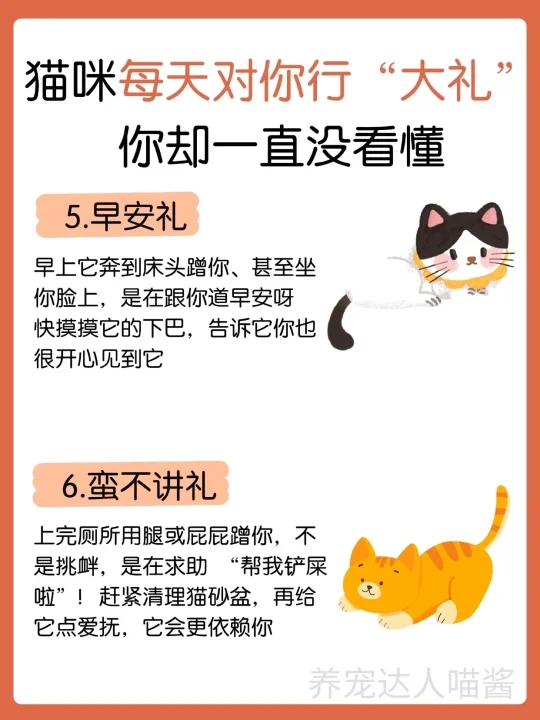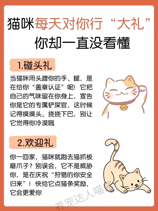 猫咪每天对你行 “大礼” 你却没看懂!碰头礼是盖章认主、露屁屁是顶级信任、缓慢眨眼是 “亲你一下”… 还有早安礼、分享礼等 10 种专属礼仪,每一个都藏着它深沉的爱意,养猫人快看看你家猫送过哪些 “大礼”