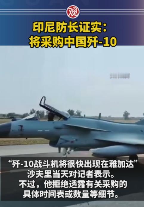 印尼官宣采购了中国歼-10战机,谁最慌?当然是印尼的敌对国家,首当其冲的肯定是澳大利亚。 印尼英明!买了中国飞机,印尼就不受美国节制。一旦与澳大利亚发生冲突,可以自主出动飞机,而不需要给美国打报告。即使打报告,美国明显会偏袒袋鼠国。 印巴战争,给中国军机做了一次广告,以后在世界各地都要见到中国的战机了!不管是不是真的,能在西方军备中撕开一道口子就是胜利,只要有了开头,一切就都有可能了。 歼-10在东南亚的成功,体现了中国军工的世界认可范围将不断扩大!经过实战的武器确实好卖,统一台湾就是展示更多武器的机会!