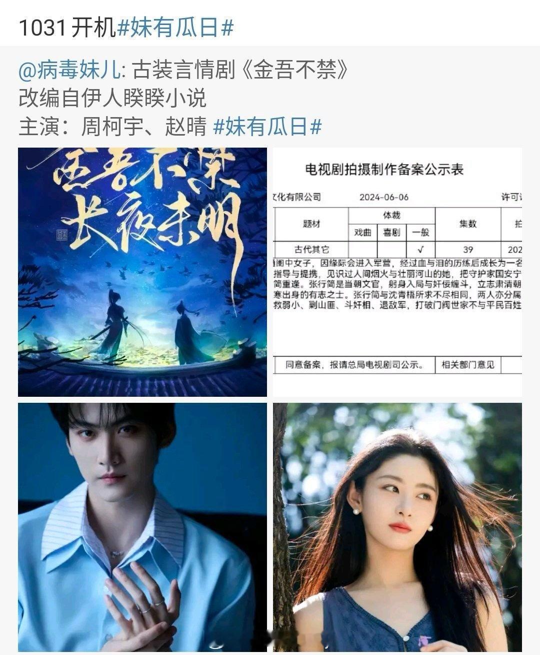 🍉周柯宇、赵晴、夏之光《金吾不禁》月底开机