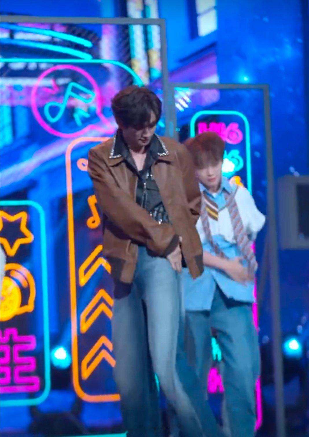 丁程鑫HeyMamma舞台直拍你好星期六 谁的目光被丁程鑫锁定了?《Hey Mamma》直拍中棕色皮衣加身,气场与帅气并存,表现力拉满!