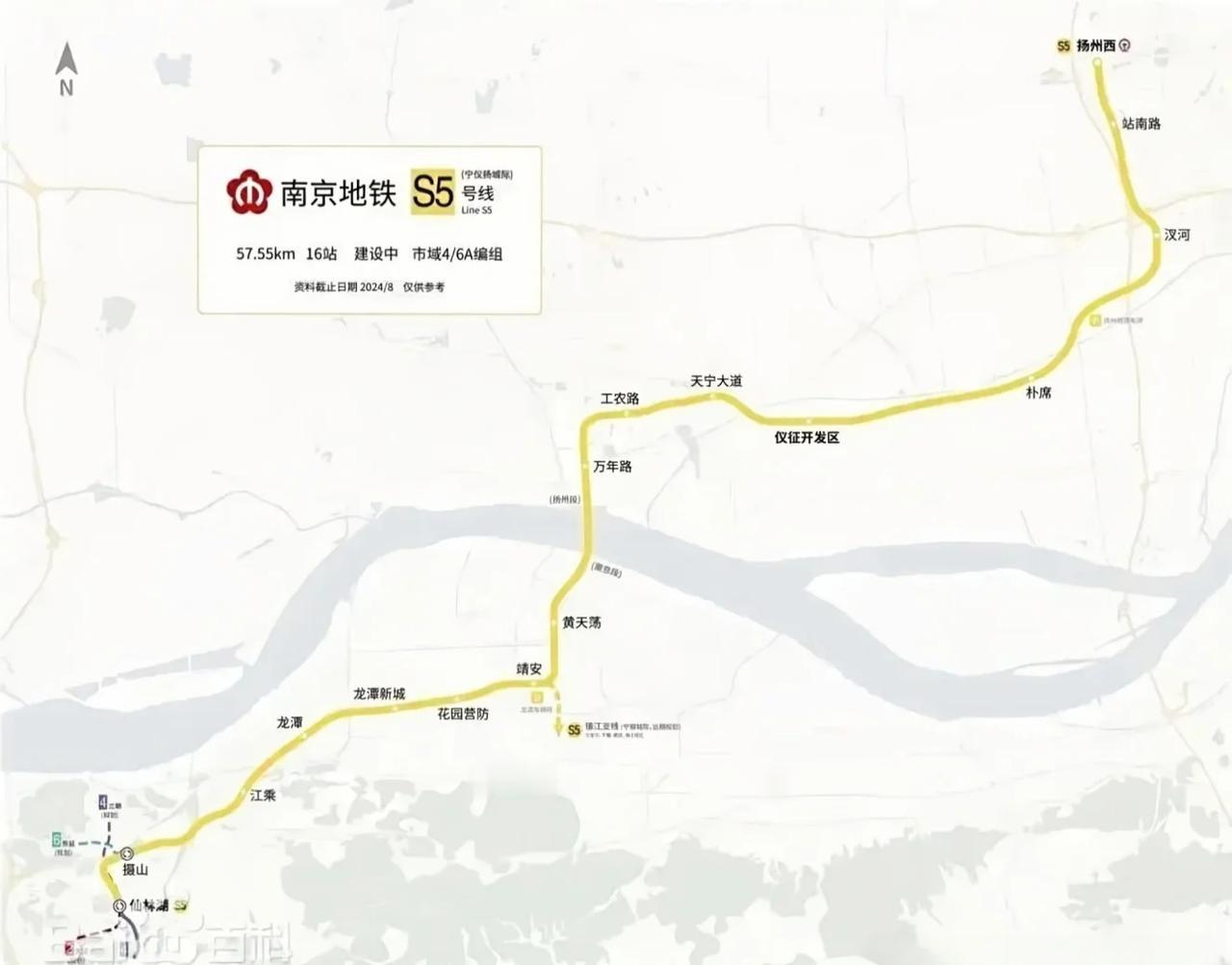 南京地铁S5宁扬城际要来了 S5线(仙林湖-扬州西站),计划开通时间:2026年