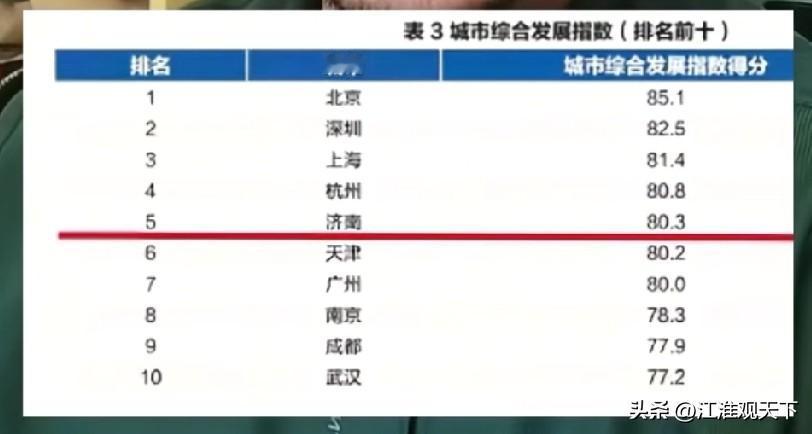 济南超越天津,成为北方第二城,就是民间争议非常大,不太认可 网络上有句名言,“自媒体没话题就编榜”,意思就是在中国的互联网上,各种榜单最吸引眼球,引发流量,反正各种榜单都有人看,最近几年,自媒体作者玩腻了榜单,很少有人在家里瞎编榜单了,但是这个活,媒体届,各种社会团体又接过来了,2025年大家看到的榜单不下十多个,城市综合实力榜,全国百强市,百强县,百强区,准一线,新一线城市榜等等榜单。 10月份,中国标准化研究院发布的《2025城市发展综合指数》榜单,北京稳居北方城市第一,北方第二城被济南拿下,天津掉落到第三名。 南方第一城深圳位居第一,上海位居第二,杭州位居第三。 这个榜单可以说是在网络上争议最大的榜单,也是大部分人都不认可的榜单,因为超乎了普通人的正常认知,很多人认为,这个榜单甚至没有自媒体编的榜单客观,合理[捂脸]济南现状 济南城市天际线 济南城市形象 青岛济南差距 济南名片