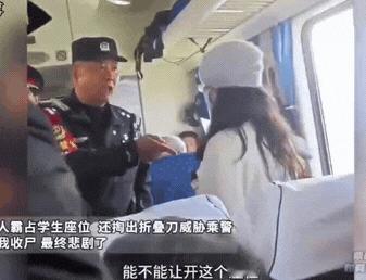 见过嚣张的,没见过这么拎不清的! 女子带老人霸占学生座位,被劝还掏出折叠刀威胁乘警,是把法律当空气? 别以为撒泼就能占上风,她谎称手机丢失赖着不走,乘警劝说时还拿东西砸人,叫嚣着“等我死后给我收尸”,老母亲不仅不阻拦,反而帮着抢刀,真是错得离谱又嚣张。 其实霸座本就是违法行为,持刀威胁乘警更是错上加错,真以为公共场合能随心所欲? 殊不知每一次嚣张的背后,都有法律在等着纠错。 你们觉得该这种霸座又袭警的是什么行为?