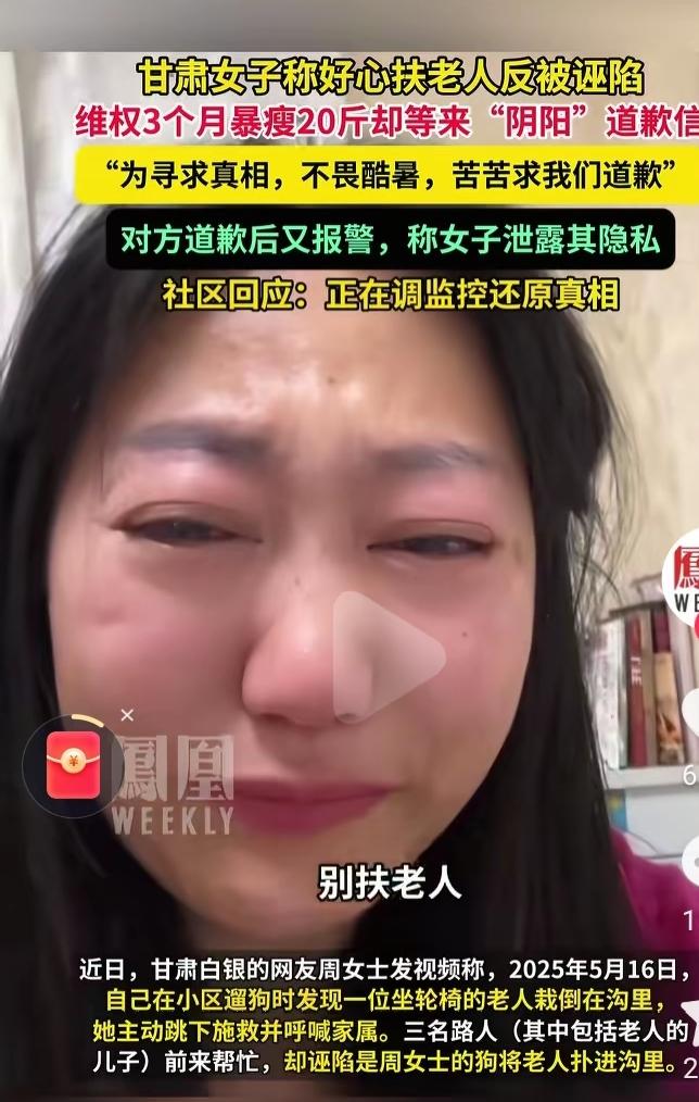 甘肃的周女士都长“老人斑”了?!上次看她还白白胖胖的,这还不到半年,脸瘦了一圈,肤色暗沉多斑,头发也薄了不少。 周女士很无语,没想到5月份在小区里扶老人的事还是“磨磨唧唧”,老人的孩子不认可监控证据,调解失败,何时能顺利解决看来仍然遥遥无期。 周女士本来就是因生病在家调养身体,却因为这件“小事”,让自己身体更差。 老人家属又说一切和老人没关系,是她骂了他们家的人云云。 听着就好难,以后再遇到老人摔倒,谁还敢上去扶?有监控都不行。 每个人都有老的那一天,年轻人得为将来的自己铺路,而不是提前“挖坑”啊!