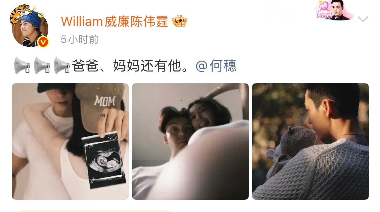 陈伟霆何穗官宣生子恭喜恭喜!恭喜两位,幸福满满[心] ​​​