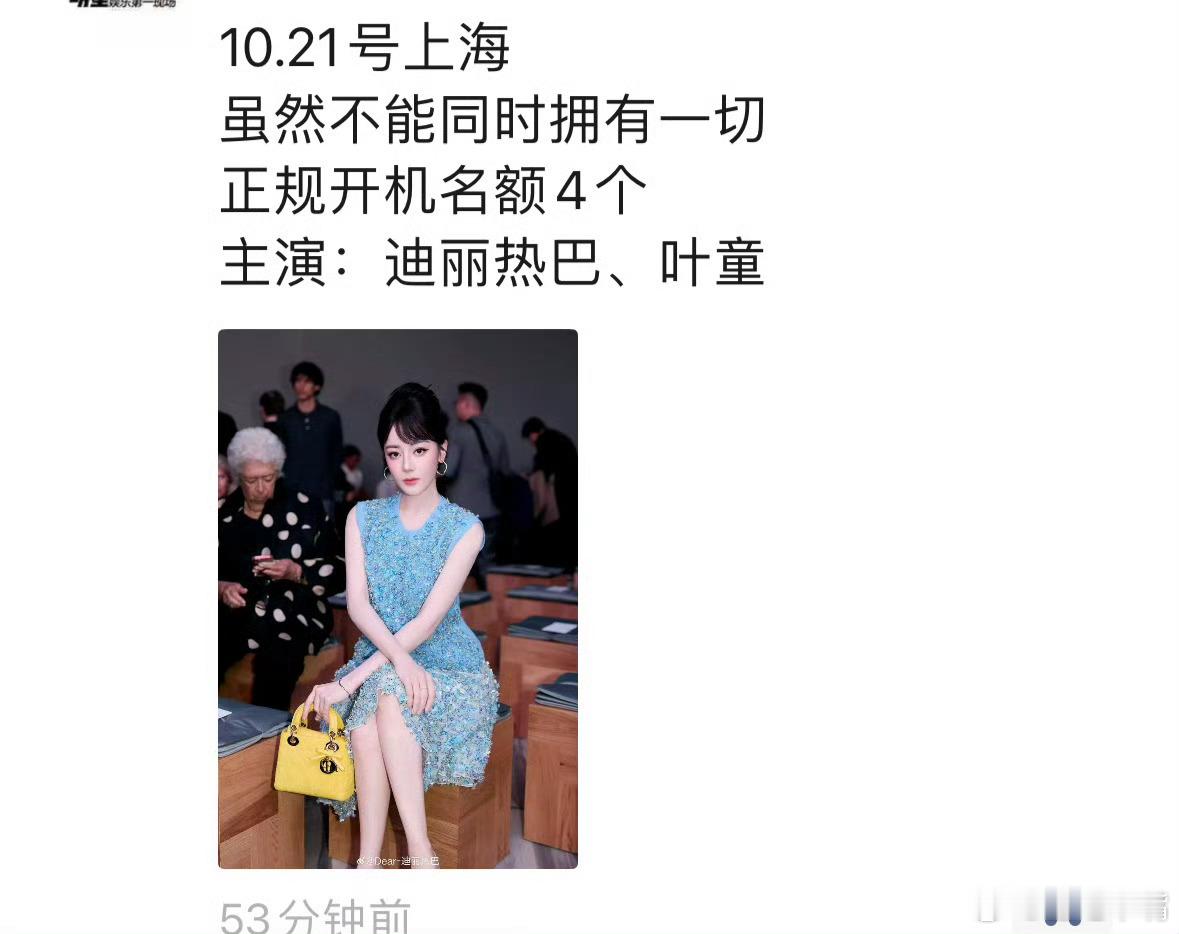 虽然不能同时拥有一切说好的今天官宣呢!等了一天了都没看到!不过没关系马上开机了主演是:迪丽热巴 叶童