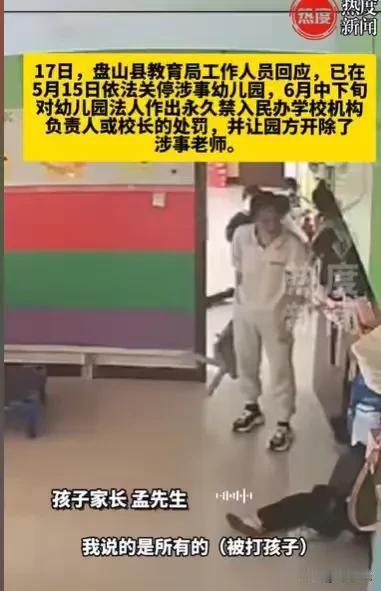 辽宁盘锦,男子将3岁的孩子送去幼儿园,结果才一个月,就发现孩子身上经常有淤青,晚上还哭闹,后来他追查下去,竟然发现幼儿园的老师,在短短的18天时间里,就虐待孩子们上1000次,不但推头撞墙,还扇嘴巴,男子赶紧带着孩子去检查,结果发现孩子的精神已经有障碍了。 2024年的9月份,孟先生终于把9岁的女儿送进幼儿园了,他终于松了一大口气,孩子上了幼儿园,就不用大人专门在家带她,他和家人都可以出去工作,家庭的负担也没有那么大了。 他每天给孩子穿上漂漂亮亮的衣服,看着孩子背着个小书包,里面全背着她的换洗衣服和汗巾,有模有样地走进幼儿园,他瞬间感觉自己的小棉袄,终于可以学习独立,学习知识了,他心中感到很是欣慰。 可女儿上的幼儿园,并没有学会乖巧,反而回到家之后更是闹腾了,他还发现,女儿身上经常有淤青。 那时,孟先生就在想,可能是女儿比较调皮,这么小的孩子,在幼儿园跑来跑去,磕磕碰碰,留下淤青,也是很正常的,他那时工作也忙,回来之后,还要经常哄哭闹的女儿,他并没有多想此事。 正是孟先生的粗心大意,丝毫没有察觉出女儿的心理变化,完全忽视女儿不想去幼儿园,晚上哭闹的现象,才导致自己的女儿,又被虐待了好几个月。 直到有一次,女儿回来精神不对劲,他才察觉事情不妥,他回想起这几个月,女儿不怎么想去幼儿园,身上还有淤青,就赶紧带女儿去看医生,结果医生诊断,他女儿精神有障碍了,孟先生这才怀疑女儿在学校被虐待了。 为查清楚真相,孟先生看了3月3号到21号的监控,结果里面的一幕,不但让孟先生为之愤怒,所有的家长都气愤了。 只见,监控里,孟先生的女儿露了个头,就被老师推她的头撞墙,还扇她嘴巴,看到这一幕,女儿几个月以来的异常反应,孟先生都有了答案。 而被虐待的不单是他的女儿,从这些天的监控里看,很多孩子都被虐待了,在短短的18天时间里,这些孩子竟然被虐待近1000次。 所有的孩子要是不听话了,老师就会推他们的头撞墙,要是闹腾了,就扇他们嘴巴。 这些孩子只有三岁呀,在家里,那都是父母,爷爷奶奶,外公外婆的宝贝,可来到幼儿园,那几个老师的眼里,却是可以任意摆布,任意虐待的孩子,看着就让人感到恐惧。 看到自己3岁的女儿在幼儿园被如此虐待,孟先生非常痛心,无法接受女儿所经历的这些遭遇。 他从来没有想过,女儿会在幼儿园会遭遇这样的经历,在他看来,幼师都是比较有爱心,有耐心的女老师。 即使她们有时候不耐烦,会不小心伤害到孩子,那也是偶然的,可女儿所遇到的这些经历,那些老师已经不配叫老师了。 发生这样的事情,孟先生肯定要追究下去,不但孟先生要追究下去,所有的家长都不敢把孩子送往这个幼儿园了。 已经被虐待的孩子,家长已经非常愤怒了,没有被虐待的孩子,家长内心也是非常害怕,害怕下一个被虐待的孩子,就是自己的孩子。 事情发生之后,这个幼儿园已经被关停了,涉事的4名老师被开除了,并且也被处罚了。 但发生这样的事情,就单单孟先生的女儿来说,他的女儿将会带着这些阴影,影响她的一辈子。 发生这样的事情,那么家长们该怎么办呢? 首先,老师虐待孩子,这显然已经对孩子们构成了伤害,他们的行为已经构成了故意伤害行为。 如果孩子们的伤是轻微伤,那么涉事老师们的行为,就构成了违法行为。 《治安管理处罚法》第43条规定:殴打他人的,或者故意伤害他人身体的,处五日以上十日以下拘留,并处二百元以上五百元以下罚款;情节较轻的,处五日以下拘留或者五百元以下罚款。 如果有孩子的伤是轻伤以上,那么老师的行为就构成故意伤害罪。 《刑法》第234条规定:故意伤害他人身体的,处三年以下有期徒刑、拘役或者管制。 犯前款罪,致人重伤的,处三年以上十年以下有期徒刑;致人死亡或者以特别残忍手段致人重伤造成严重残疾的,处十年以上有期徒刑、无期徒刑或者死刑。 其次,发生这样的事情,幼儿园有责任进行赔偿,他们没有对孩子们履行安全保障义务。 《民法典》第1198条规定:宾馆、商场、银行、车站、机场、体育场馆、娱乐场所等经营场所、公共场所的经营者、管理者或者群众性活动的组织者,未尽到安全保障义务,造成他人损害的,应当承担侵权责任。 孩子们在学校学习生活,幼儿园是要保证他们的人身安全的,如果孩子们幼在儿园受到伤害,家长们都可以要求幼儿园赔偿。 那么你对这些老师的虐待行为有何看法呢?