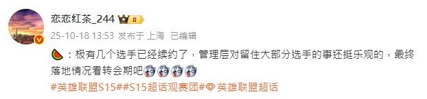 这样听下来,至少都是留住了三个人吧!TheShy与Rookie作为战队灵魂人物,估计都会留队,其余位置中,Wei与GALA其中一人估计已续约,而辅助选手Meiko的留队可能性则相对较低