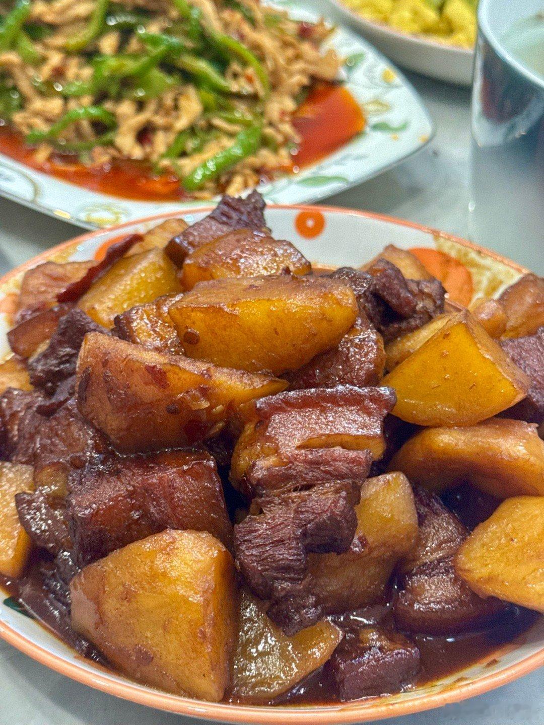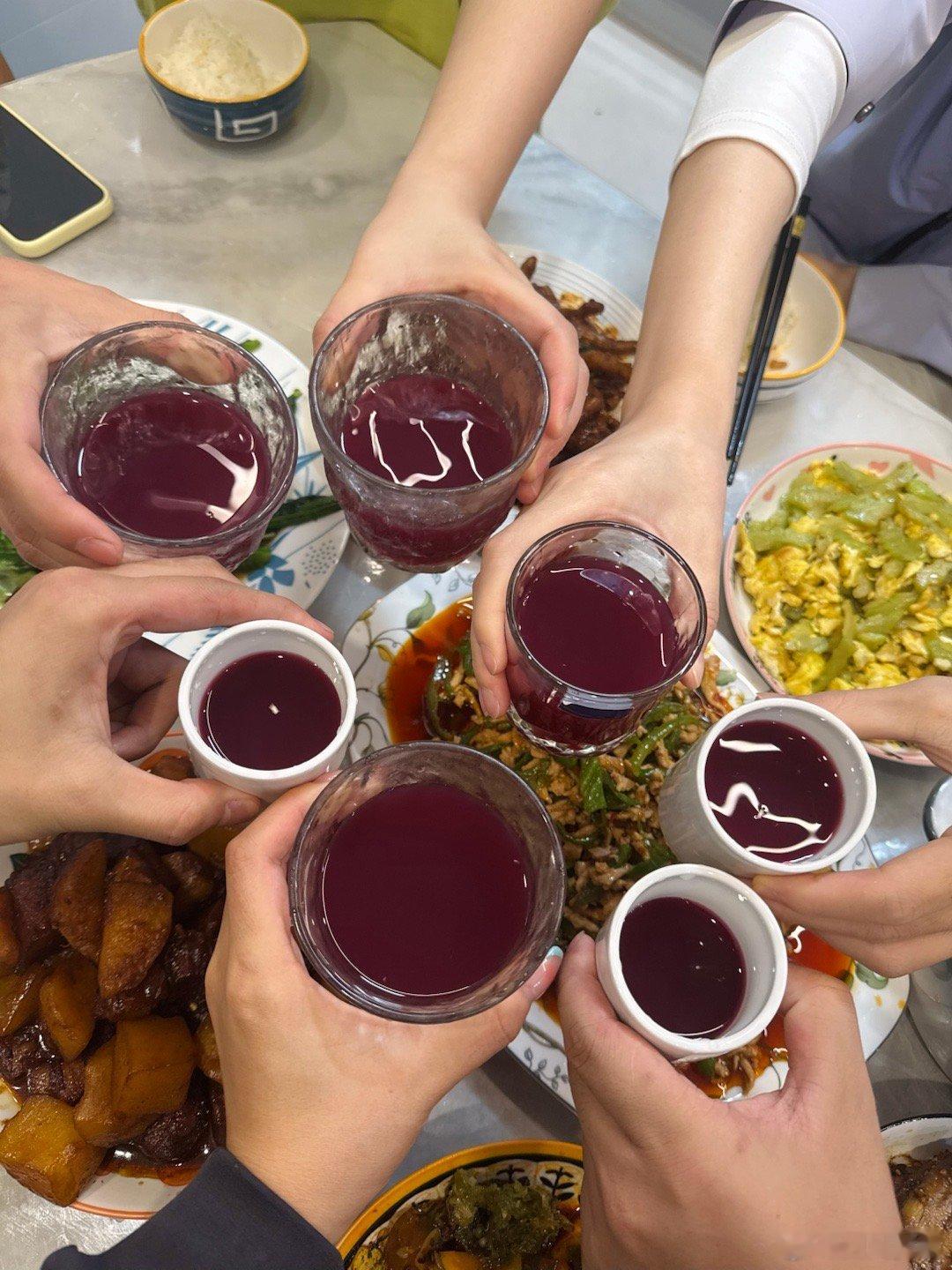 难得凑齐朋友这么多人,一下午的做饭成果,红烧肉太好吃了!!肥而不腻,酱香浓郁!!现做的石榴汁刚好解腻[老师爱你][老师爱你][老师爱你]