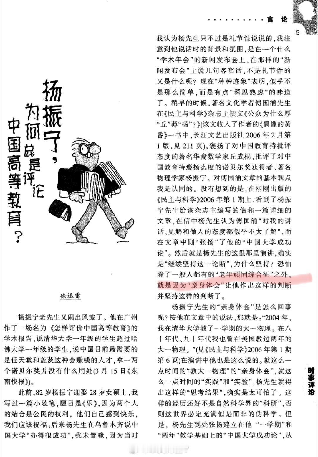 当然这样的言论更是受到媒体和大众舆论的批判,有人写文章说杨振宁这是“老年顽固综合症”。