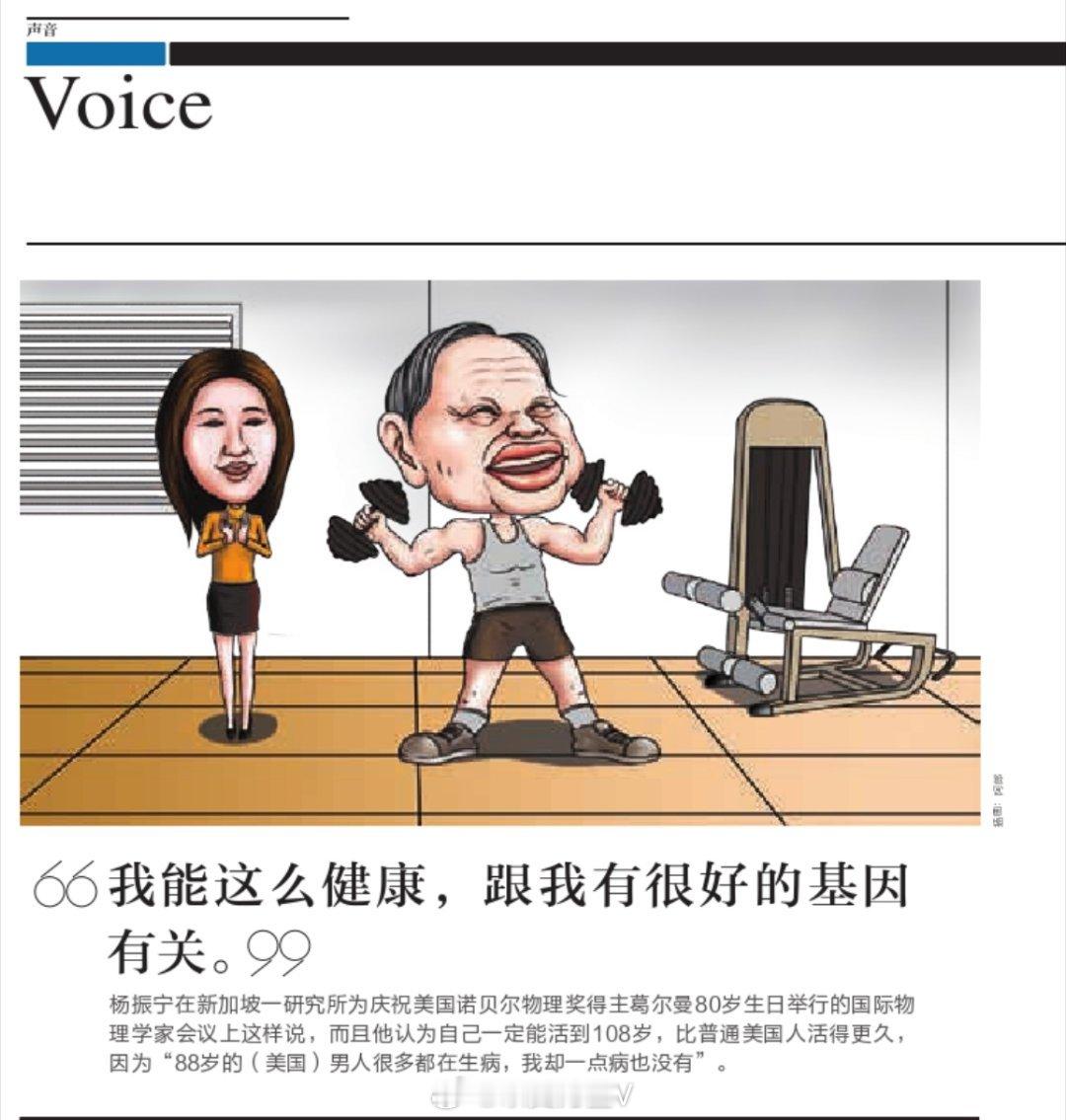 杨振宁说自己能活到108岁,比普通美国人活的更久。因为“88岁的美国男人都在生病,而我一点病都没有。”
