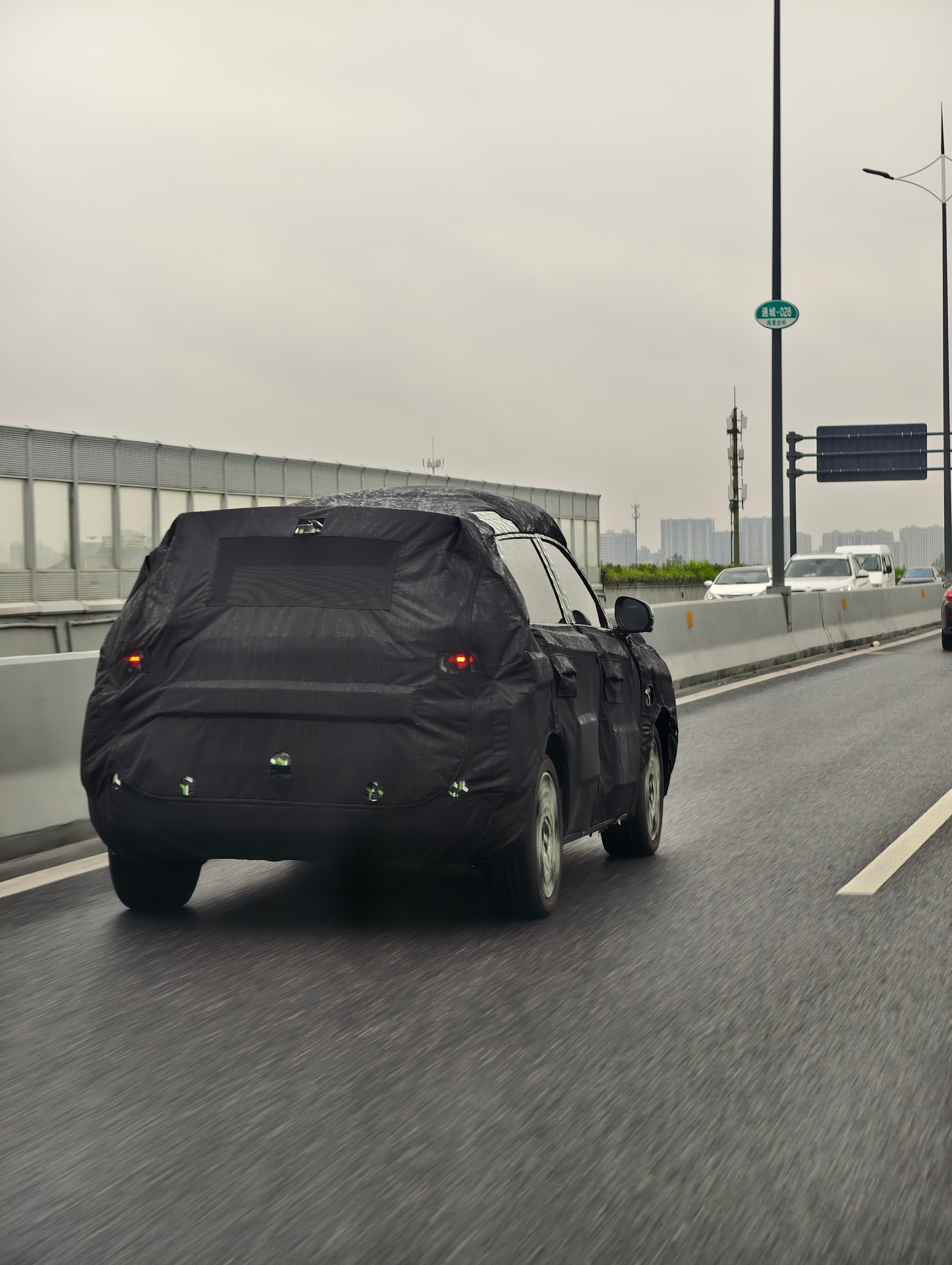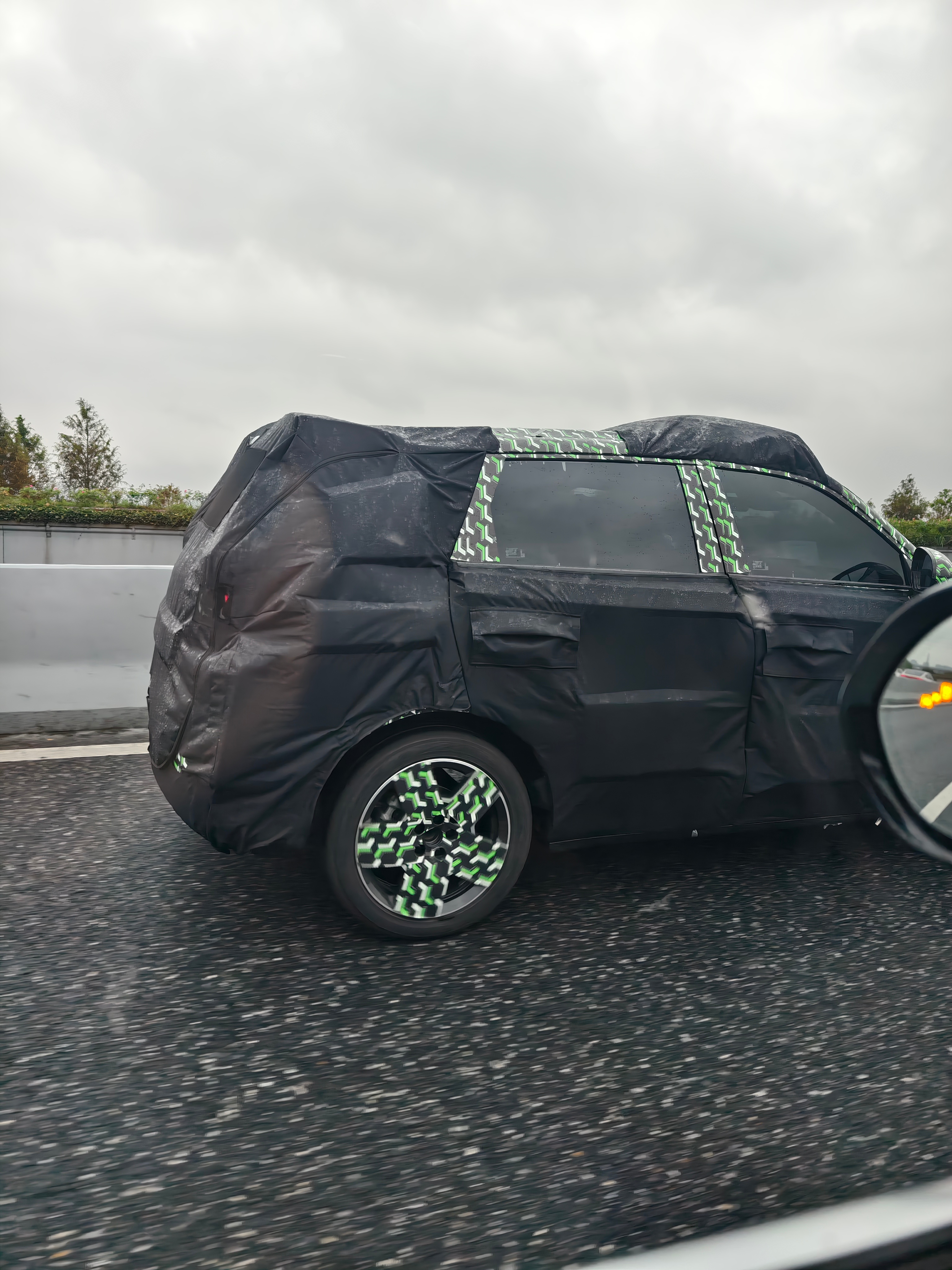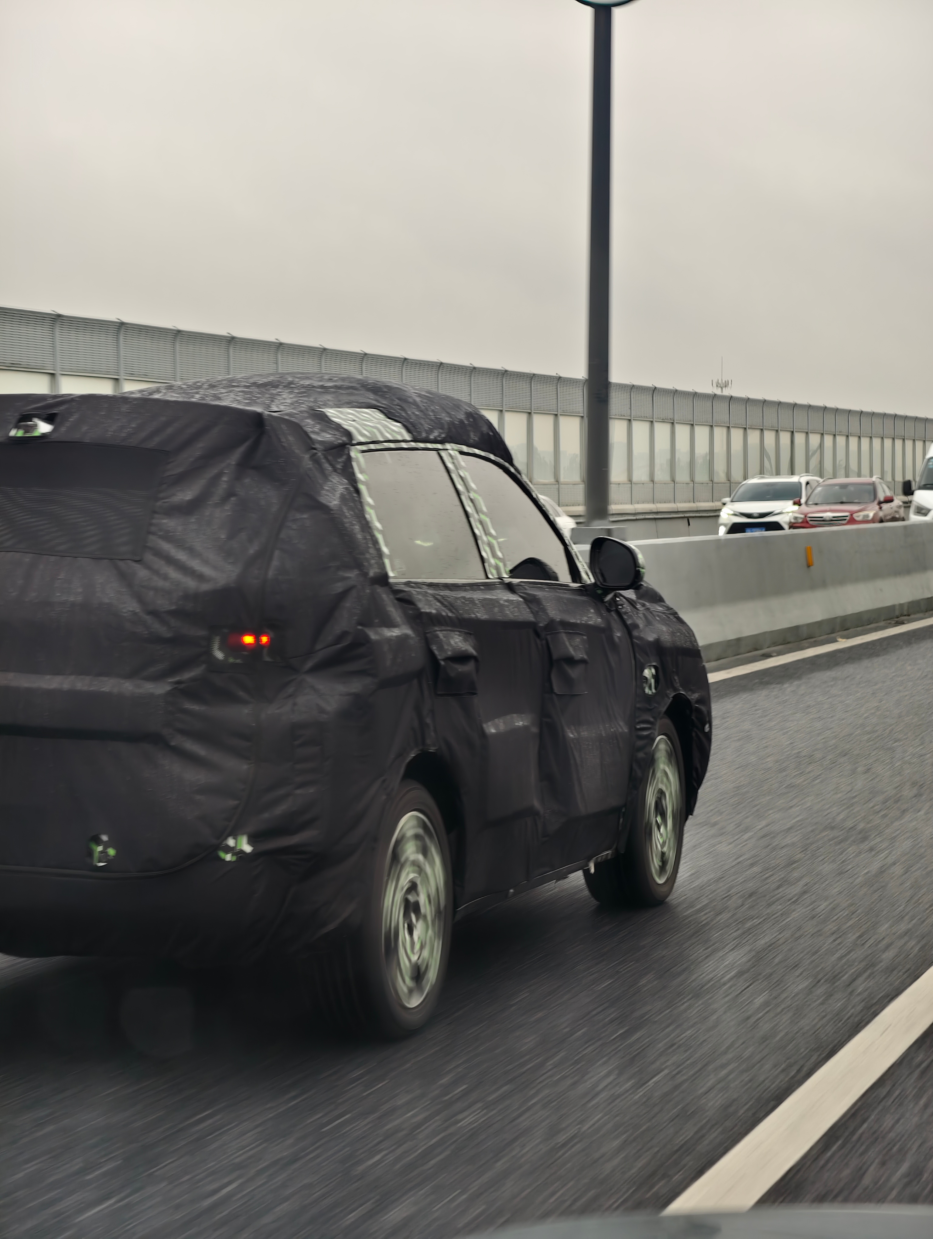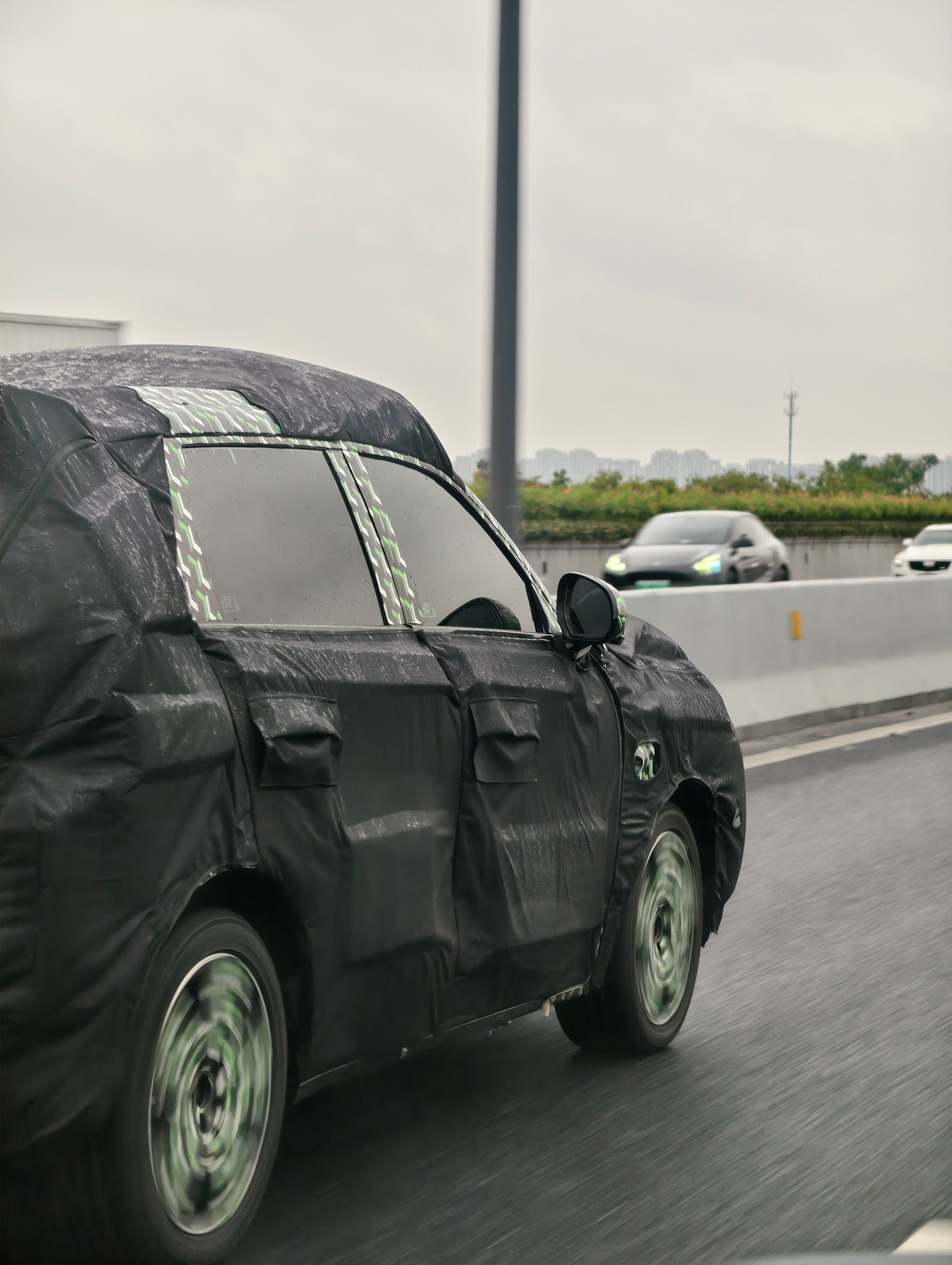 回老家路上偶遇一辆高度伪装的新车,看花纹应该是零跑的,不过这是台小车,不是零跑D19。