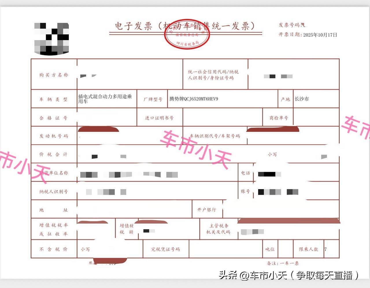 提车日记:赶在省补结束几个小时前提一辆腾势D9 今天给江苏的小伙伴提了一辆腾势D9,配置是2025款的DM-i 智驾版 1020四驱尊贵型,指导价38.98万那款。这位小伙伴有个旧车要拿省补,江苏这边省补已经停了,所以拿的四川省补。他找我定的时候,四川省补还有几个小时就结束了,时间比较紧。不过最后还是顺利完成提车、开票,赶上最后一班车。 这位小伙伴之前和我谈过这款车,他们当地给的价格和我的差的不多,后来我让他在当地提车。昨天下午他又加了我微信,让我抓紧给他找一辆。因为他们当地给他的那一辆不仅是150天库龄的车子,还是一辆展车,还得让他办5年按揭。而且当地不保证在四川省补10月18日结束前给他开出发票,这样他就拿不了省补。后来我和他沟通,一旦我找到车,确保昨天可以开票,就要立马打款。因为如果不能立马打款,就没办法开票。车主也理解这一点,表示可以。后来我是昨天晚上7点多给他找到一辆车,现金优惠16000,另外有4000的保险补贴和6000的厂家置换补贴。并且他这个车还可以拿15000的省补。在昨天晚上能找到这个价格,已经非常不错。因为这车正常的行情就是优惠20000,但是没有保险补贴。我和这家店关系还可以,所以店里并没有因为车主要拿省补而狮子大开口,而是以正常价格给的。