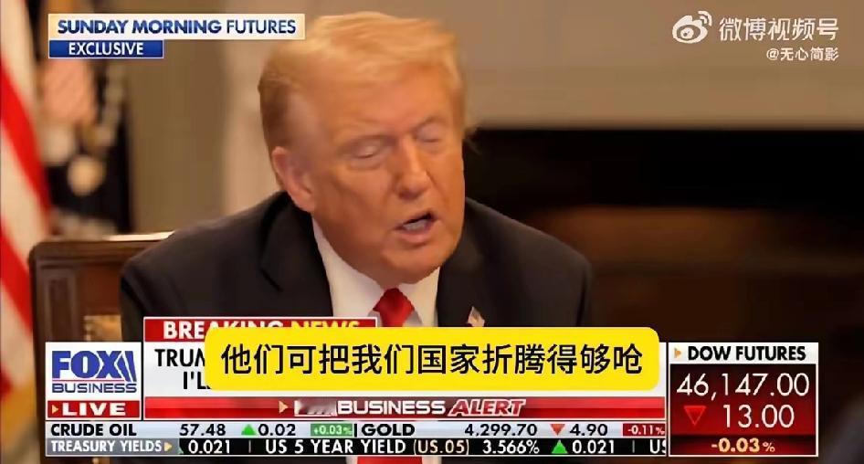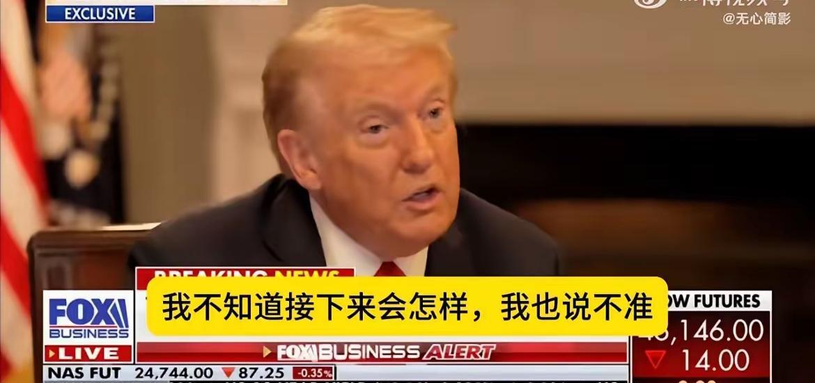 特朗普真的被折腾的神不守舍啦。看一下。在接受采访时特朗普说:“我要特别提一下中国,(气馁)他们可把我们国家折腾得够呛。(更气馁)他们把资金都撤走了。(振奋起来了)局势(被)逆转了——我是说我们和中国现在关系很好,(又气馁了)我不知道接下来会怎么样,我也说不准(懂王承认也有说不准的了)。” 就这么一段话,我们看到的是特朗普把自己起起伏伏的无奈、无助、绝望、力不从心的心情表达的淋漓尽致,完全没有了给他国加征关税时的得意忘形,完全没有了要给中国加征100%关税时的叫嚣,但,这都是他自找的。如果特朗普继续不知进退,还把自己当老大使唤,到时候真的连跪地求饶的机会都没有了。