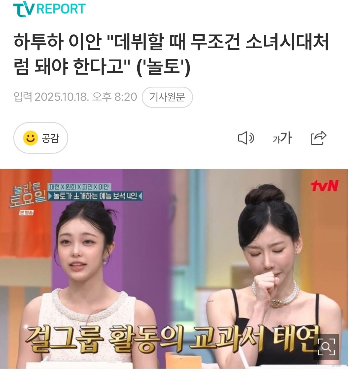 【新闻】H2H ian:“我们出道时公司就说,一定要像少女时代前辈们一样,要以泰妍前辈为榜样学习。”