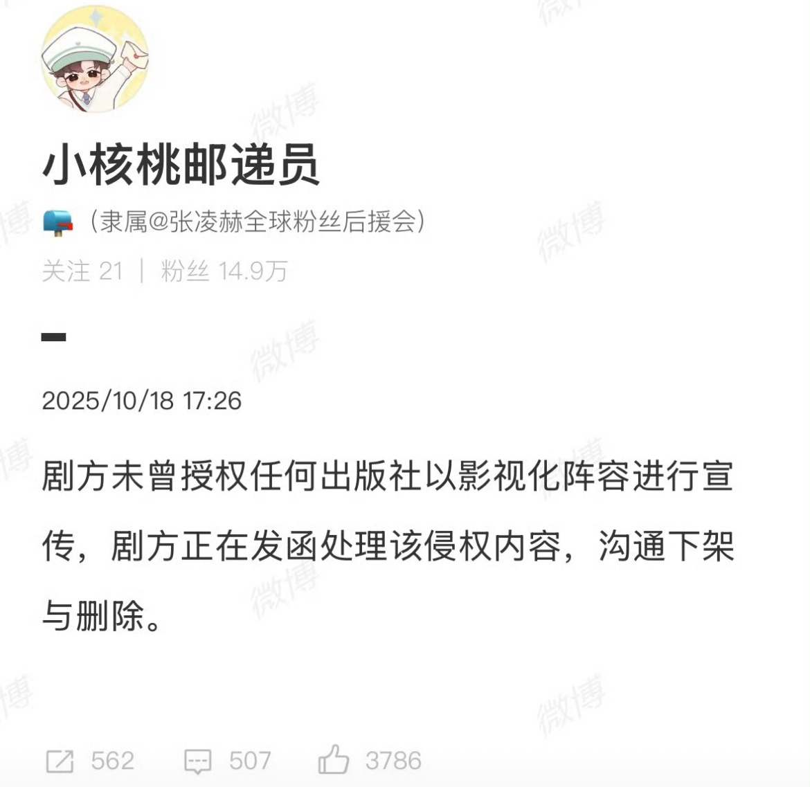 张凌赫对接回应:逐玉剧方没有授权任何出版社以影视化阵容进行宣传。