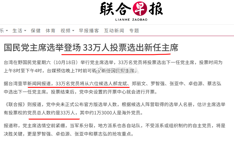 黎少康等人一直说蓝营登记人员有33万人,今天有12.2万人出来投票,也就是说只有三成多的人有投票意愿,其它六成多的人根本无所谓谁来当新的蓝营头领[悲伤]郑丽文拿到6.2万票,这6.2万人只占蓝营33万人的18.8趴,也就是说这一成八的人,决定了整个集体的事务和走向。[黑线]