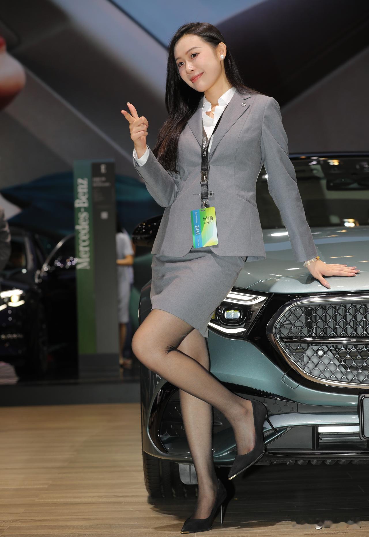 车展上的灰色西装裙丝袜美腿小姐姐!!!果然还得是职业主播!干练有气质!分