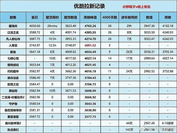 侯明昊《入青云》开播第11天进优酷年榜!!
