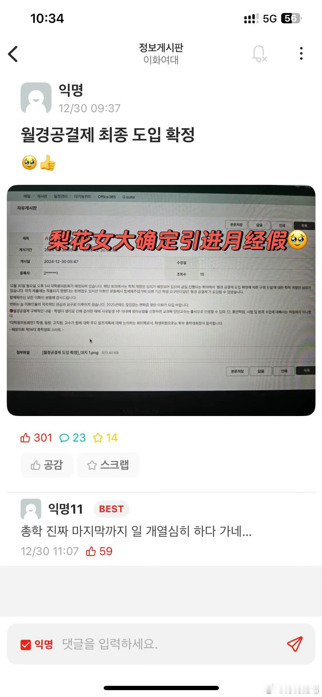 梨花女大终于迎来月经假了??
