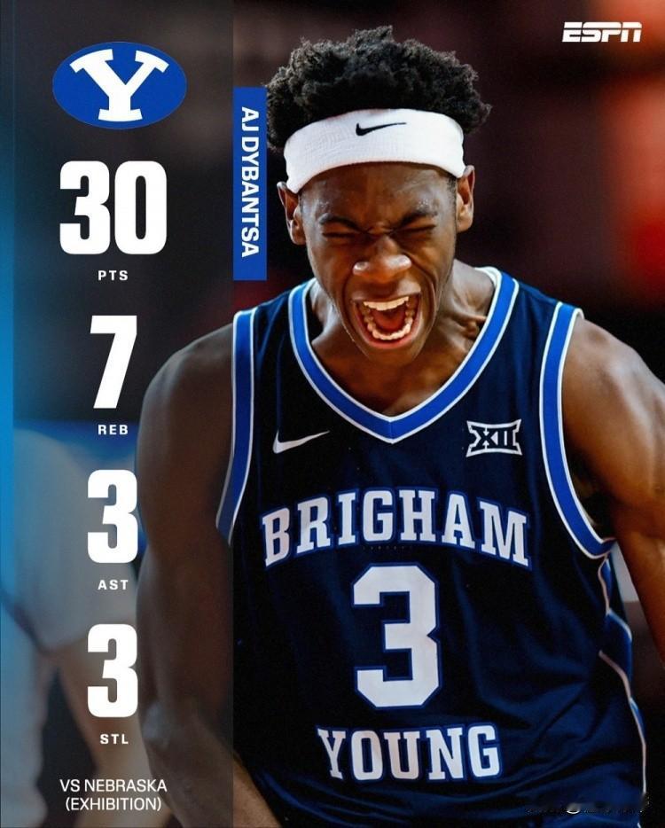又是选秀大年,明年准状元迪班萨爆砍30分! 在今天凌晨进行的一场NCAA热身赛上, 效力于杨百翰大学的明年状元热门AJ-迪班萨表现相当抢眼,全场投篮19投10中,三分4中2,罚球8中8,爆砍30分7篮板3助攻3抢断1封盖 的攻防一体数据。 众所周知,今年NBA选秀已经是选修大年了,状元弗拉格被誉为“百年难遇一遇”的白人天才,没想到明年还有超级天才,迪班萨表现如此出色,今年NBA垫底的球员又可以摆烂去争抢状元签了。