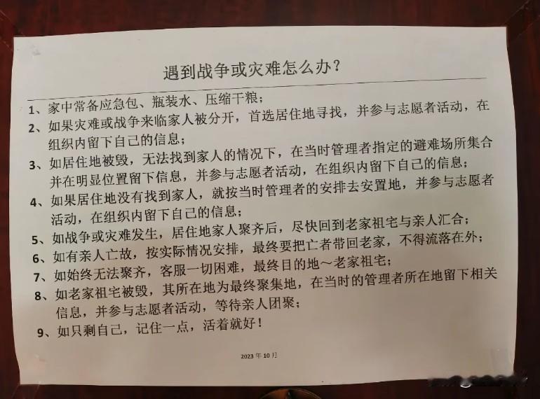 两年前就准备了,希望用不上! 防毒面罩和防护服,战术鞋,一次性内裤,止血带,匕首,净水片。该准备就准备,放着也不会坏 现在的问题是,大概不会先使用核武器,可能最先用的是气象武器,先来一波自然灾害,灭掉一帮人,冲毁道路,淹没房子,粮食无法生产。再来地震,寒潮冻死一批,最后核武器出手