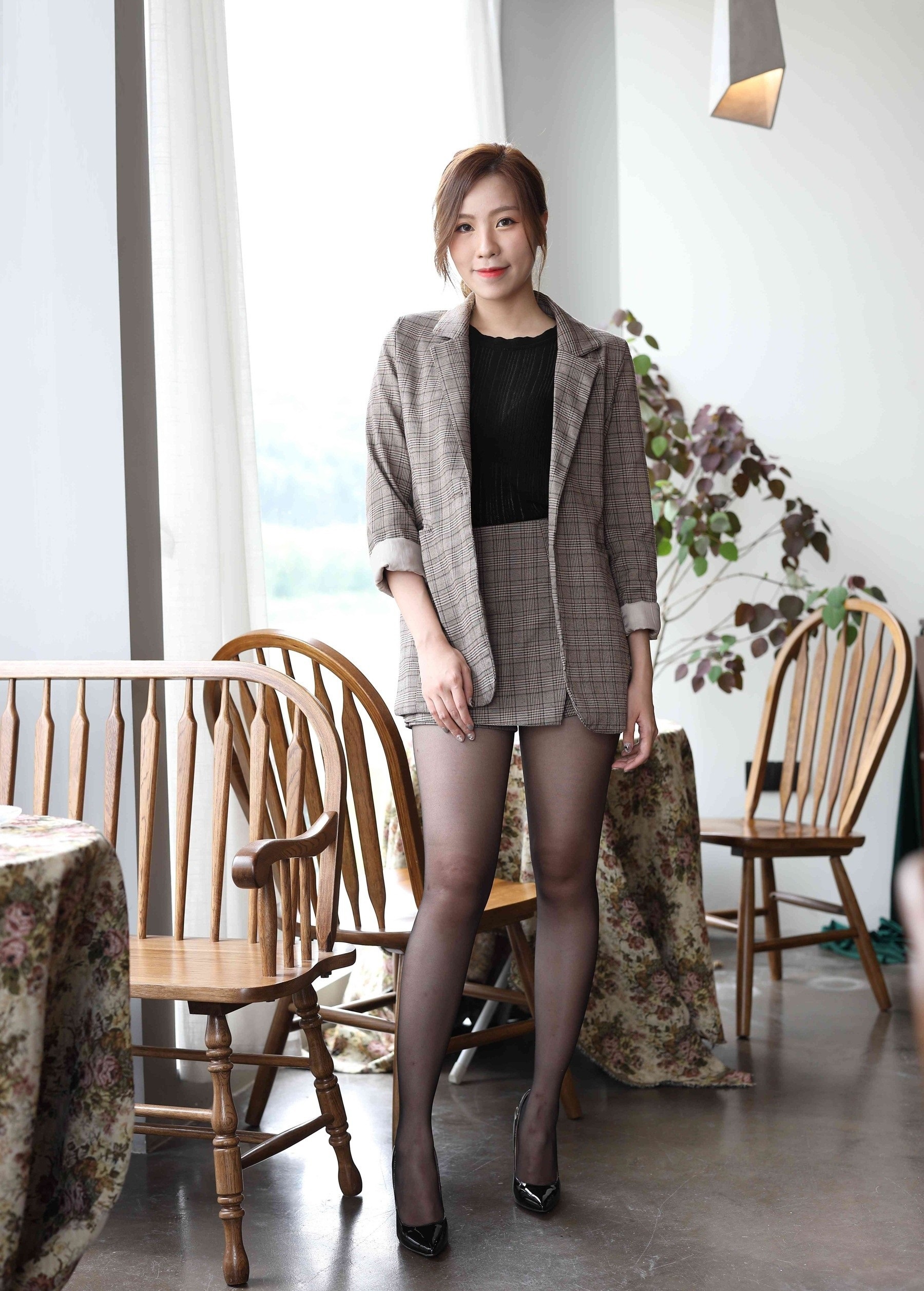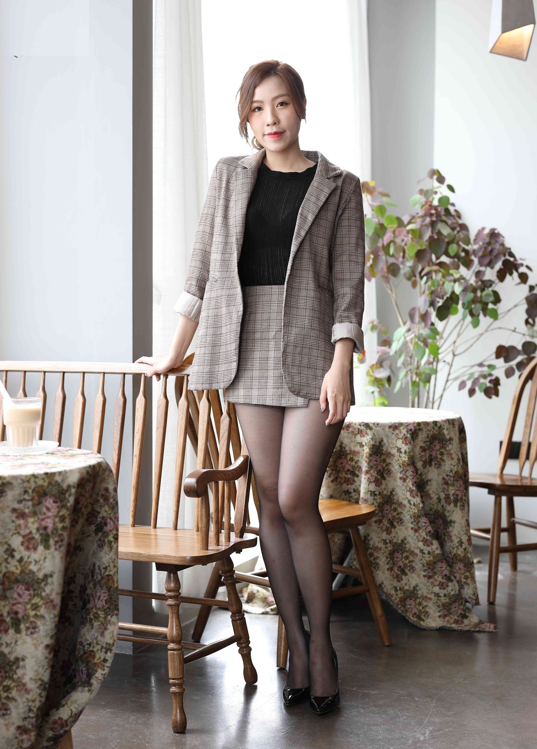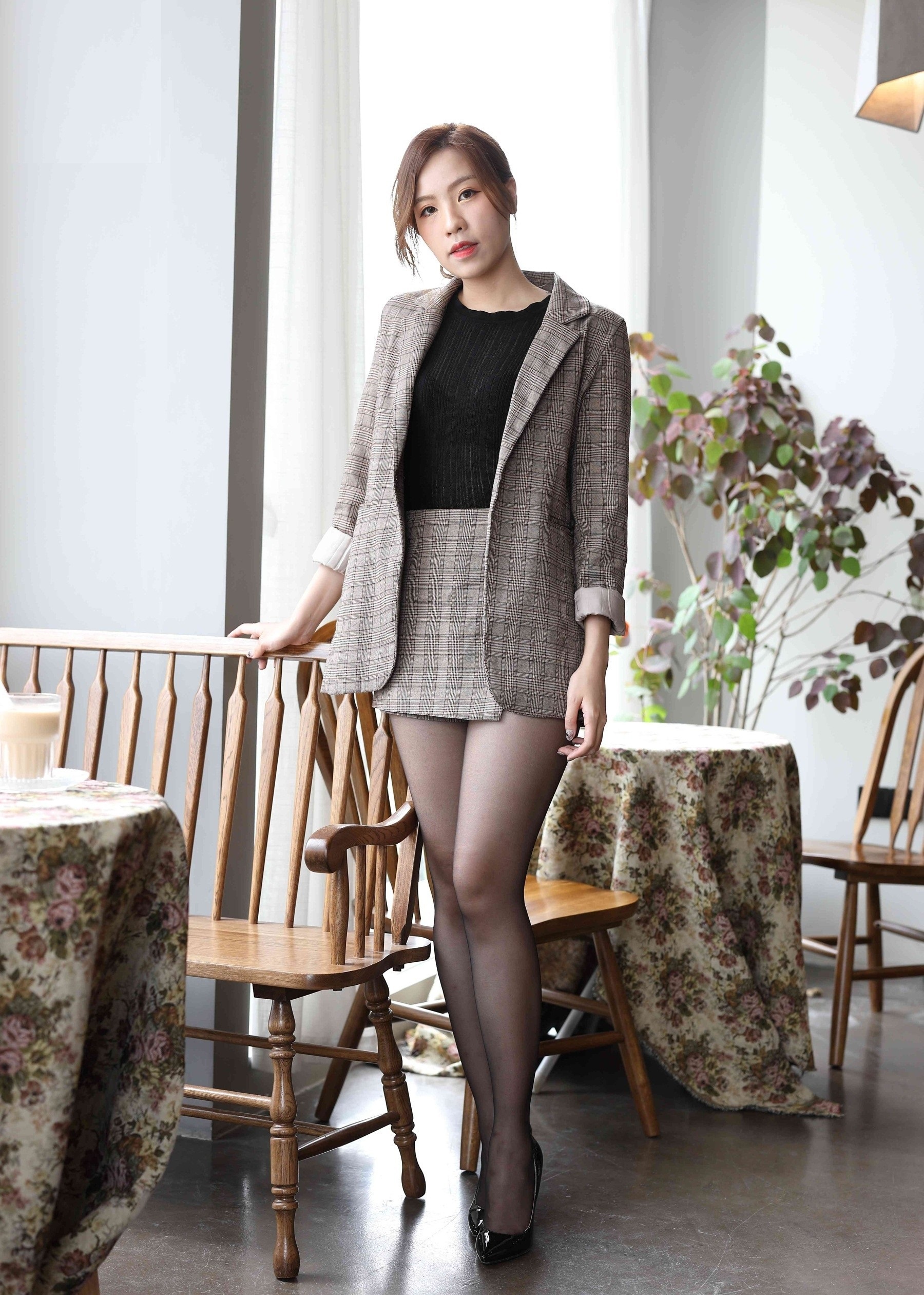 💼轻熟魅力,职场新风尚💼 想要在职场上展现不一样的自己?来试试这套轻熟风穿搭吧!经典格纹西装外套,剪裁利落,透出职场女性的干练与优雅。内搭简约黑色针织衫,不仅保暖还能显瘦,轻松打造完美身形。 👗短裙搭配,俏皮又性感👗 下身选择同系列格纹短裙,巧妙地拉长腿部线条,显得高挑又迷人。黑丝加持,增添一丝性感韵味,让你在严谨的职场中也能成为焦点。 👠尖头高跟,气场全开👠 一双黑色尖头高跟鞋,是这套穿搭的点睛之笔。不仅提升了整体造型的时尚感,还能让你在职场中自信满满,气场全开! 💼🌸无论是日常办公还是商务洽谈,这套穿搭都能让你游刃有余,成为职场中的时尚标杆。快来试试吧,让轻熟风为你的职场生涯增添一抹亮色!