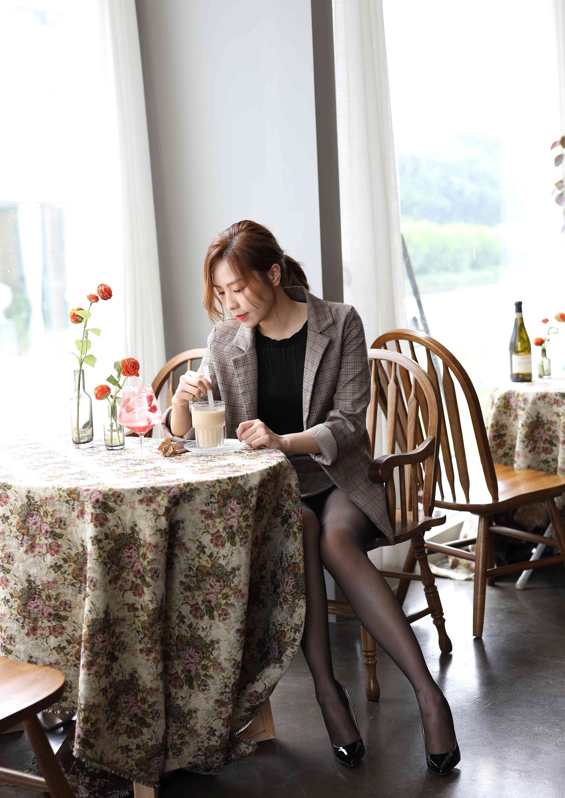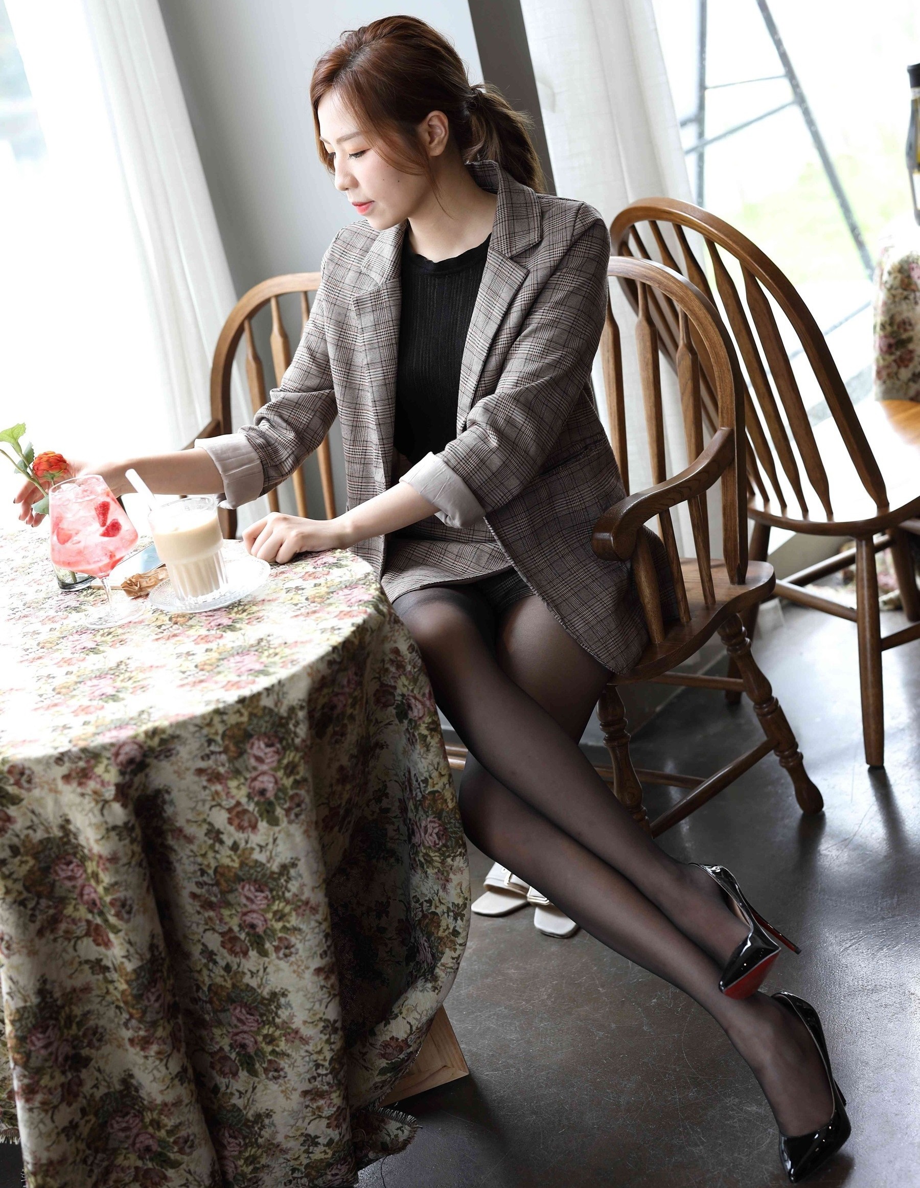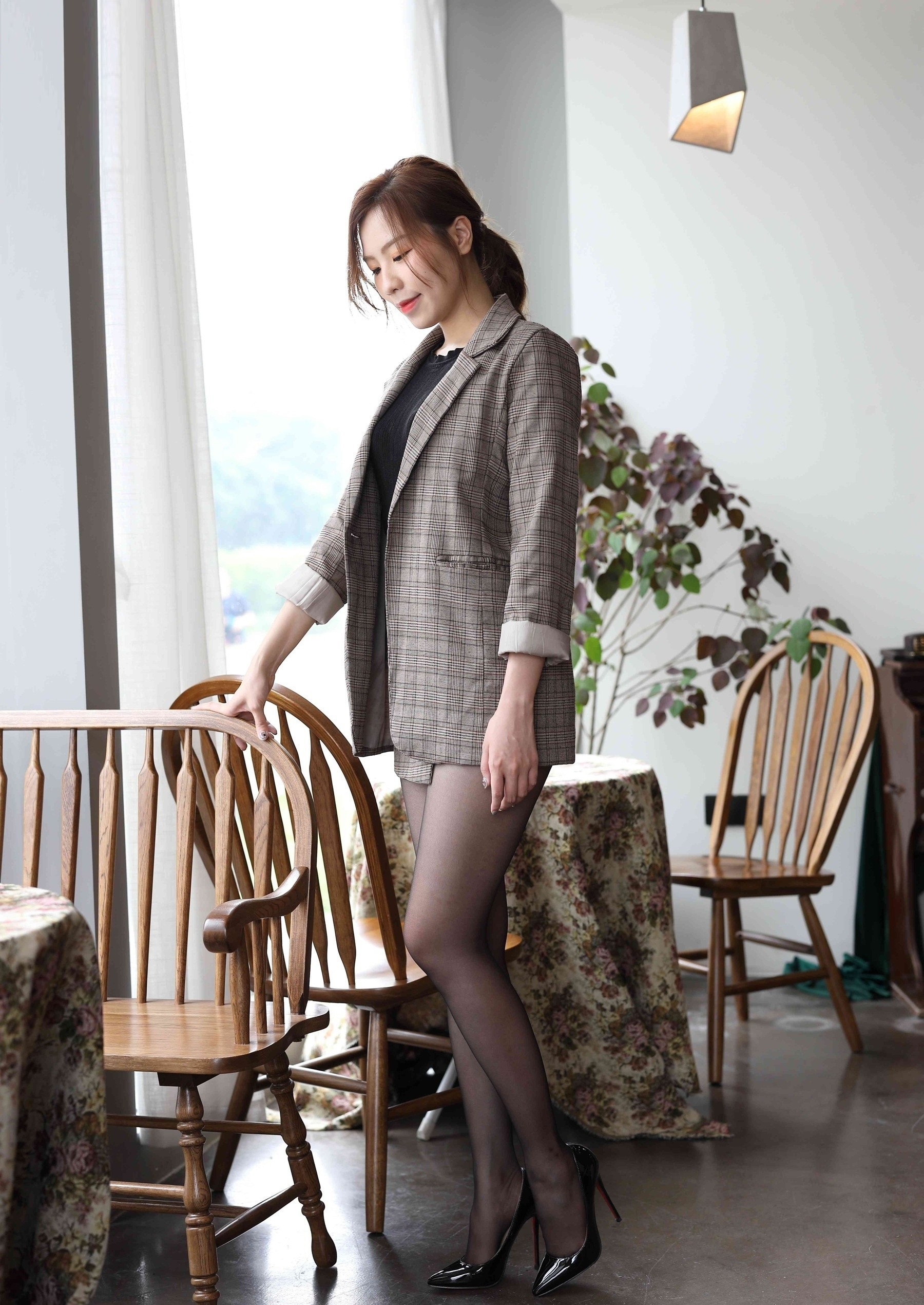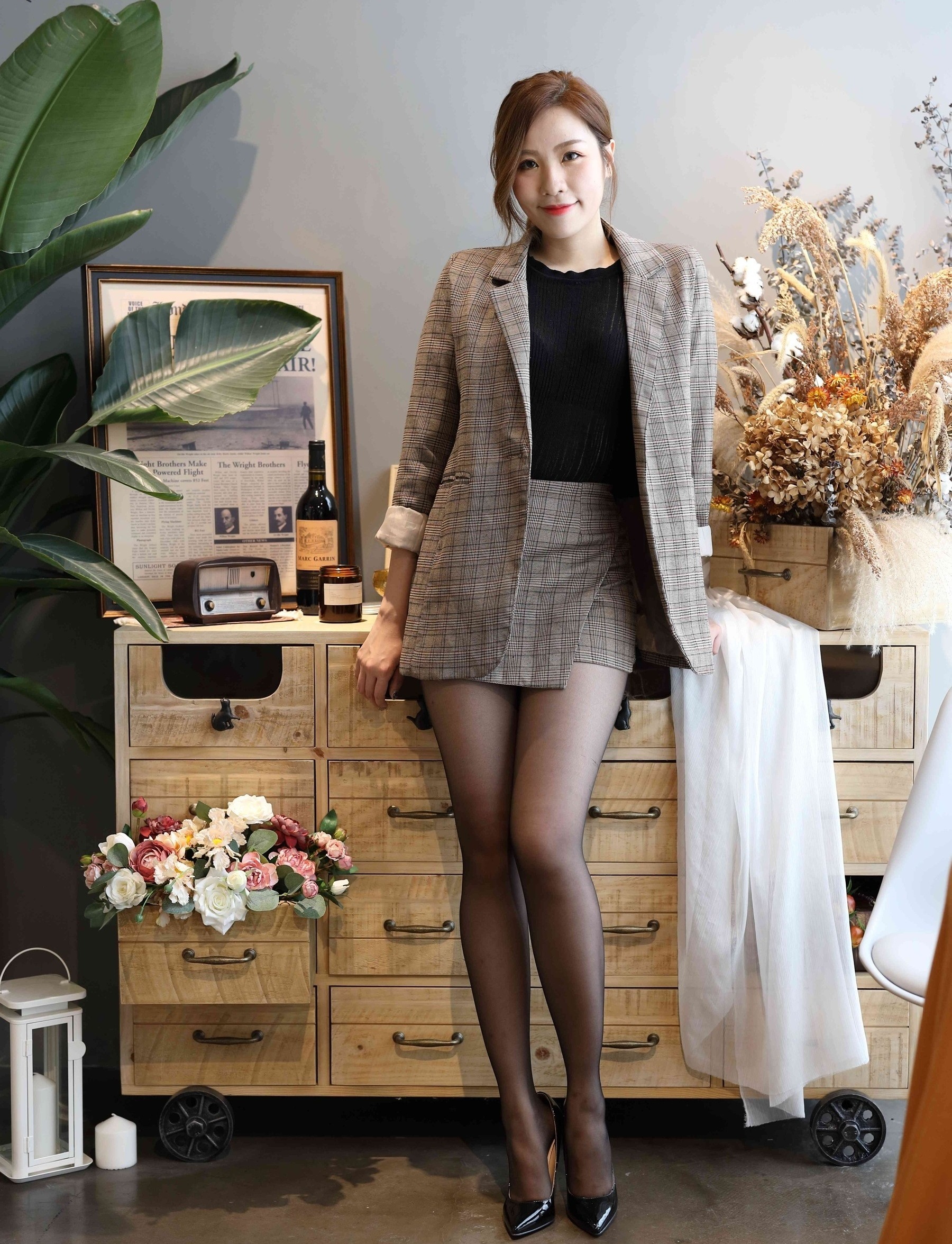 💼轻熟魅力,职场新风尚💼 想要在职场上展现不一样的自己?来试试这套轻熟风穿搭吧!经典格纹西装外套,剪裁利落,透出职场女性的干练与优雅。内搭简约黑色针织衫,不仅保暖还能显瘦,轻松打造完美身形。 👗短裙搭配,俏皮又性感👗 下身选择同系列格纹短裙,巧妙地拉长腿部线条,显得高挑又迷人。黑丝加持,增添一丝性感韵味,让你在严谨的职场中也能成为焦点。 👠尖头高跟,气场全开👠 一双黑色尖头高跟鞋,是这套穿搭的点睛之笔。不仅提升了整体造型的时尚感,还能让你在职场中自信满满,气场全开! 💼🌸无论是日常办公还是商务洽谈,这套穿搭都能让你游刃有余,成为职场中的时尚标杆。快来试试吧,让轻熟风为你的职场生涯增添一抹亮色!