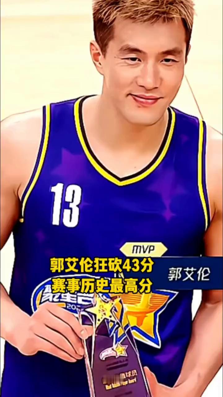 郭艾伦狂砍43分,赛事历史最高分。 10月18日晚上聚星名人赛杭州站,聚星队107比111不敌名人队。本场比赛名人队郭艾伦狂砍43分,创造赛事历史最高分,个人得分占比近40%,更是多次上演一条龙突破,连过数人上篮得分,赛后无悬念拿下全场mvp。 本场比赛郭艾伦将职业和娱乐展示的淋漓尽致,频繁使用穿裆过人、急停跳投等职业技巧,被调侃把表演赛打成真较量。而在比赛末节当比分焦灼,分差仅4分的时候他又爆发胜负欲,连突带罚锁定胜局,完全是降维打击。 这样的郭艾伦新赛季回到cba赛场,不知道会有怎么样的表现了,我们拭目以待。