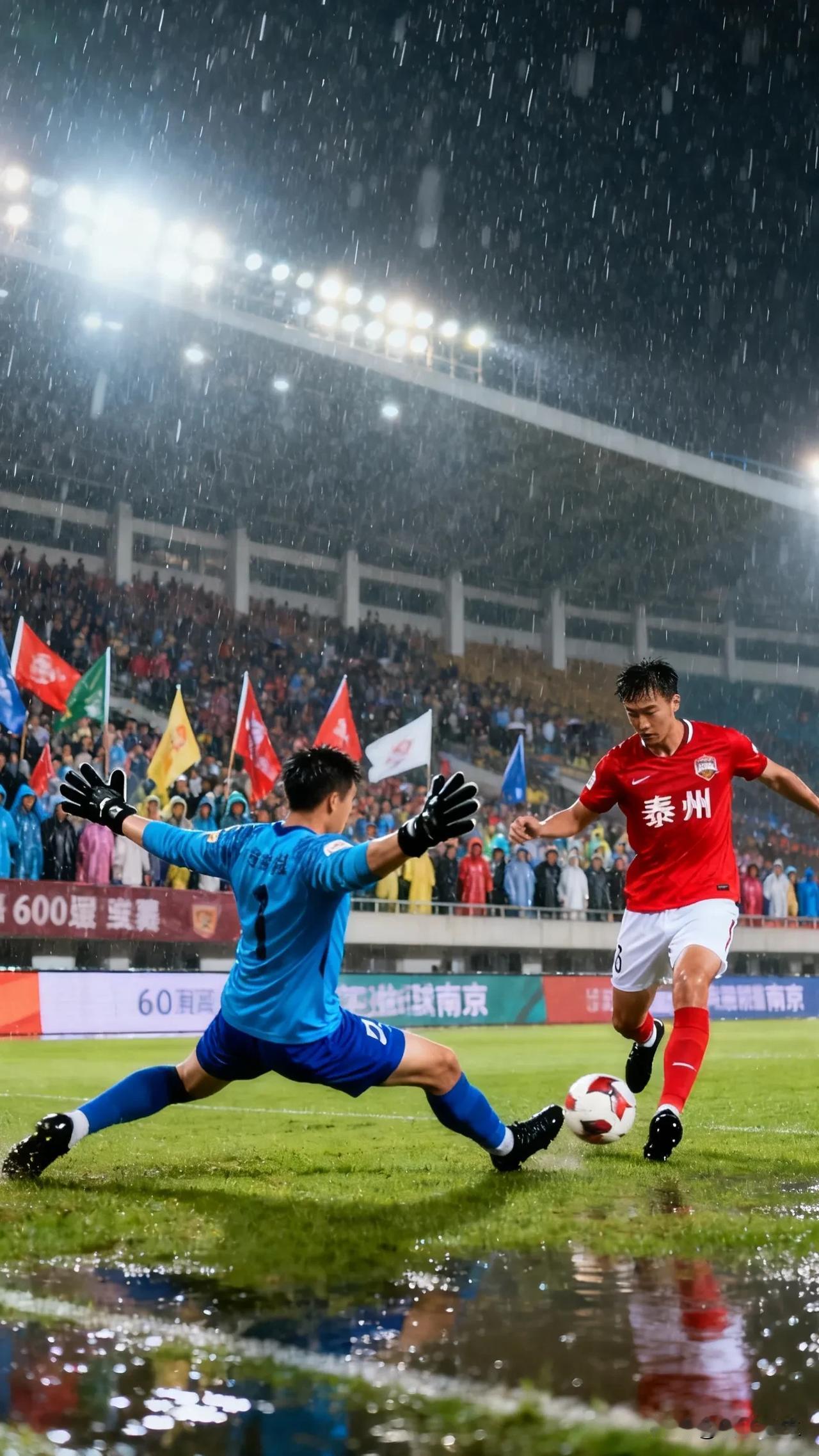 泰州队点球大战绝杀晋级,暴雨+9轮点球+3万球迷银河:这场江苏德比有多燃!黑马逆袭! 泰州队在九轮点球大战中以 9:8 力克南京队,率先杀入“苏超”决赛。 雨夜的球场,积水倒映着球员身影,泰州队红色战袍与南京队蓝色门将服形成鲜明对抗。3 万球迷雨中挥舞彩旗,闪光灯织就“银河”,与球场灯光交相辉映。当最后一粒点球入网,全场雨衣汇成彩色浪潮——这就是足球的魅力,藏在每一次绝境逢生里。